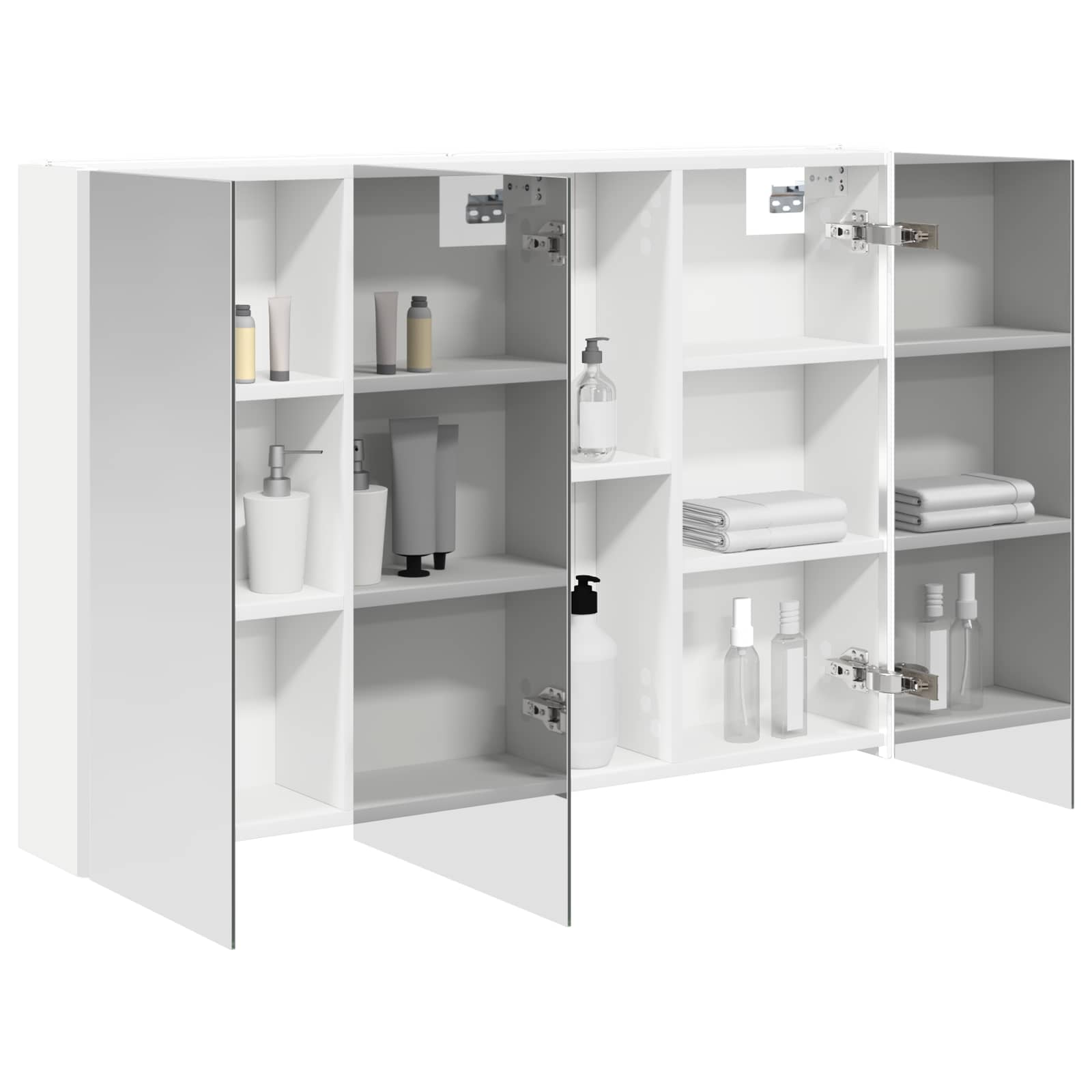 • Kaksisuuntainen peili Kaapissa on kaksisuuntainen peili, joka yhdistää heijastavuuden ja läpinäkyvyyden. Tämä häivyttää kauneudenhoitoasiat ja tarjoaa samalla turvallisuutta.