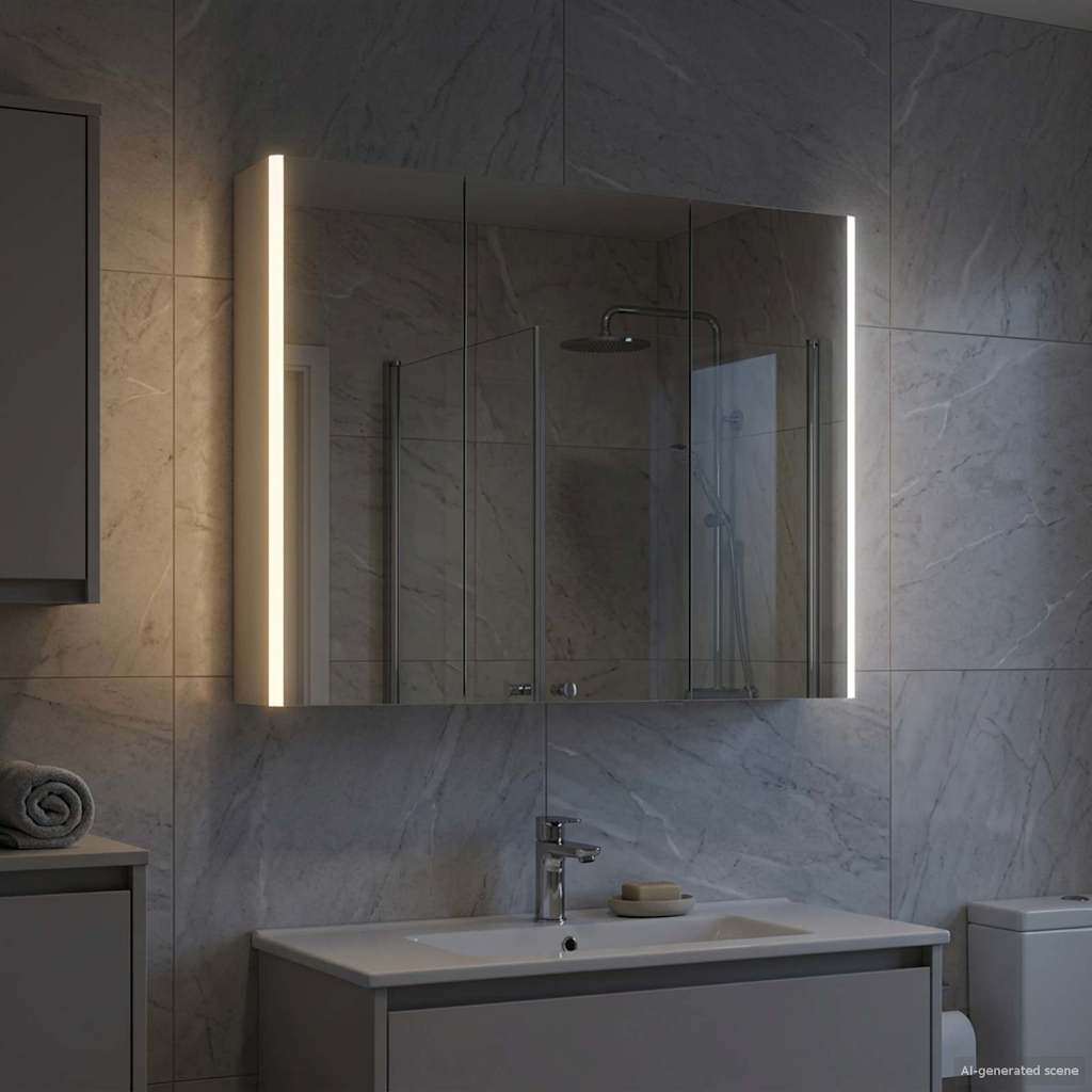 Tämä moderni kylpyhuoneen peilikaappi yhdistää tyylikkään muotoilun ja käytännölliset ominaisuudet, tehden siitä oleellisen lisän nykyaikaiseen kylpyhuoneeseen. Minimalistinen rakenne ja puhtaat linjat tarjoavat hienostuneen ilmeen, mutta kaappi on myös täynnä säilytystilaa päivittäisille tarvikkeille. Valaistus parantaa näkyvyyttä ja tunnelmaa, yhdistäen käytännöllisyyden ja muotoilun.