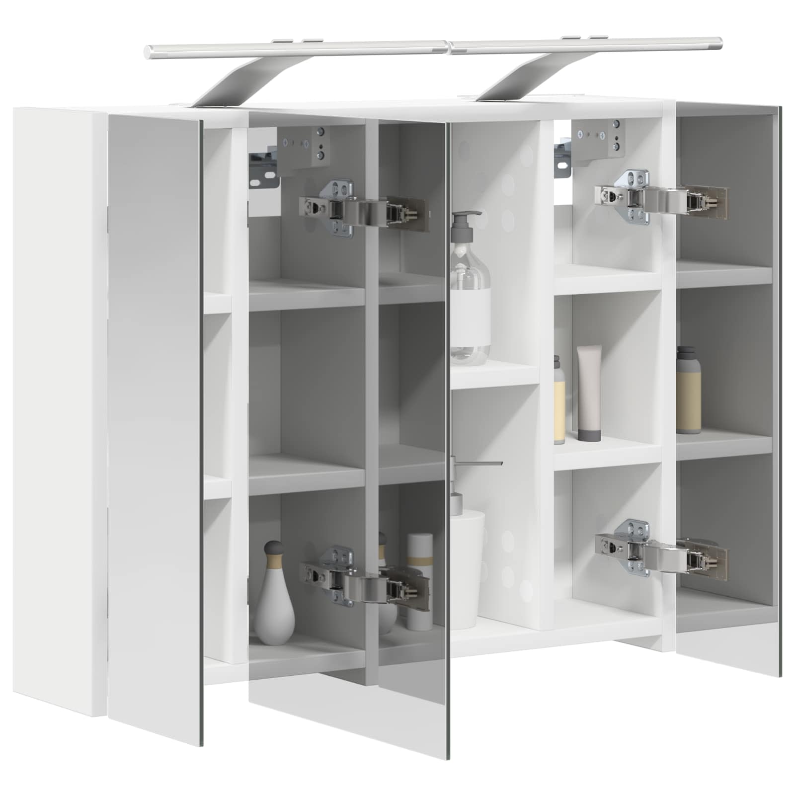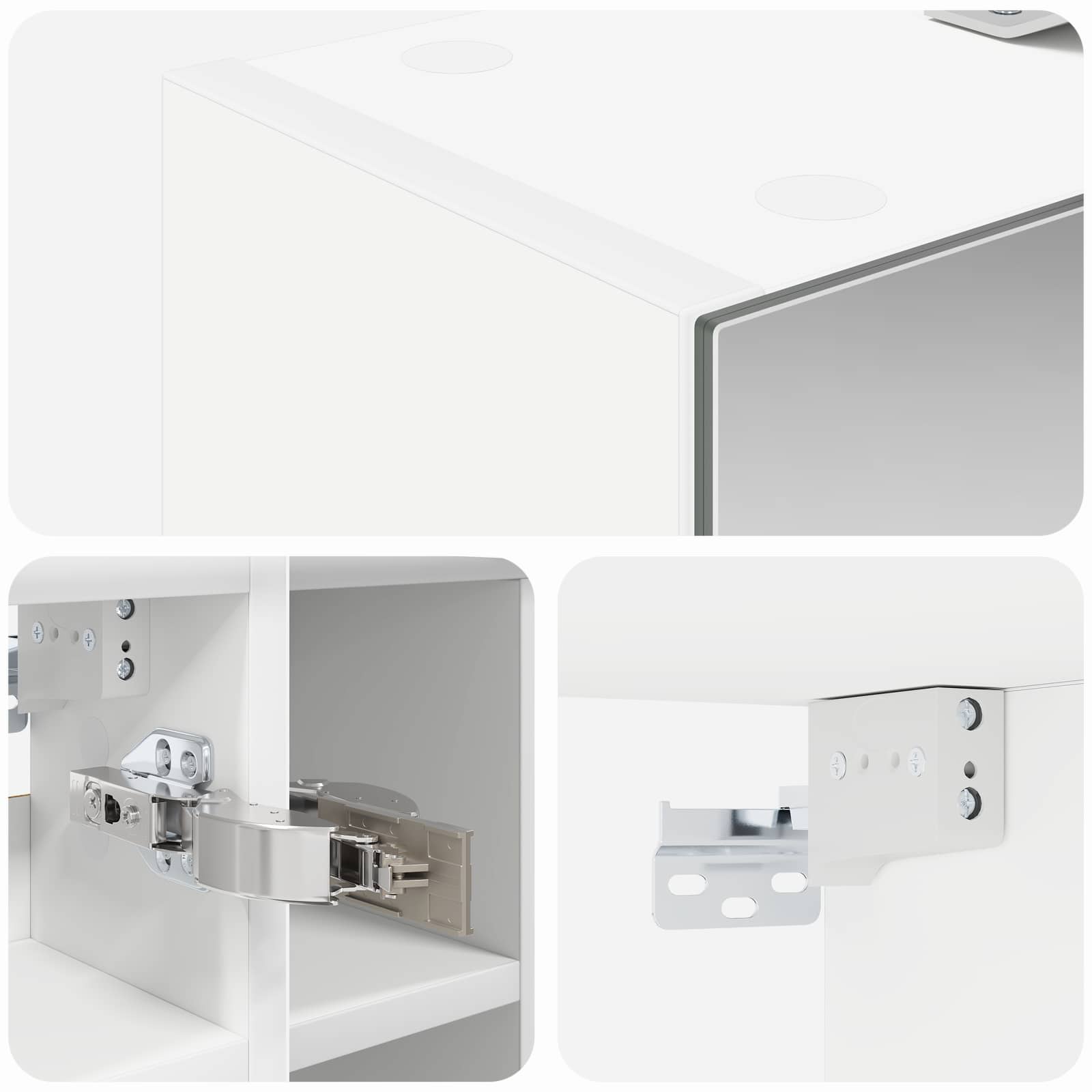• Included Components: Kaappi tulee laattahyllyjen ja saranakannen kanssa, jotka auttavat järjestämään kylpyhuoneen tärkeimmät tavarat. Laattahyllyt soveltuvat monenlaisille esineille, hygieniatuotteista vara-pyyhkeisiin, ja saranakansi tekee avaamisesta ja sulkemisesta helppoa. Peili tarjoaa myös kaksisuuntaisen heijastuksen.