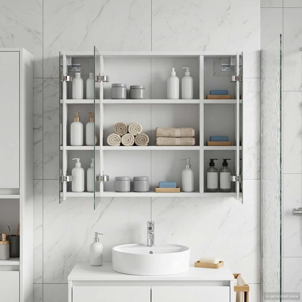 • Seinäkiinnitettävä muotoilu: Seinäkiinnitetty kaappi säästää lattiatilaa ja tarjoaa puhtaan, virtaviivaisen ulkonäön. Tämä ominaisuus on erityisen hyödyllinen pienissä kylpyhuoneissa, joissa tilan maksimointi on tärkeää, säilyttäen samalla tyylin.
