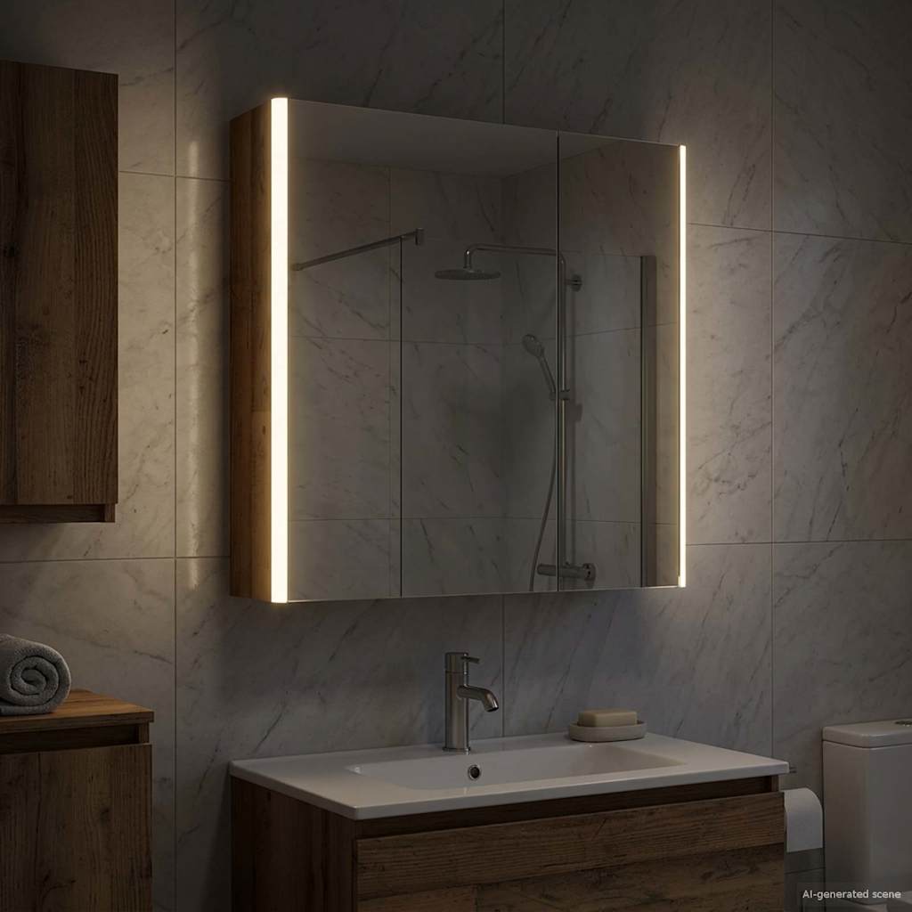 Tämä moderni kylpyhuoneen peilikaappi yhdistää tyylikkään muotoilun ja käytännölliset ominaisuudet, tehden siitä oleellisen lisän nykyaikaiseen kylpyhuoneeseen. Minimalistinen rakenne ja puhtaat linjat tarjoavat hienostuneen ilmeen, mutta kaappi on myös täynnä säilytystilaa päivittäisille tarvikkeille. Valaistus parantaa näkyvyyttä ja tunnelmaa, yhdistäen käytännöllisyyden ja muotoilun.