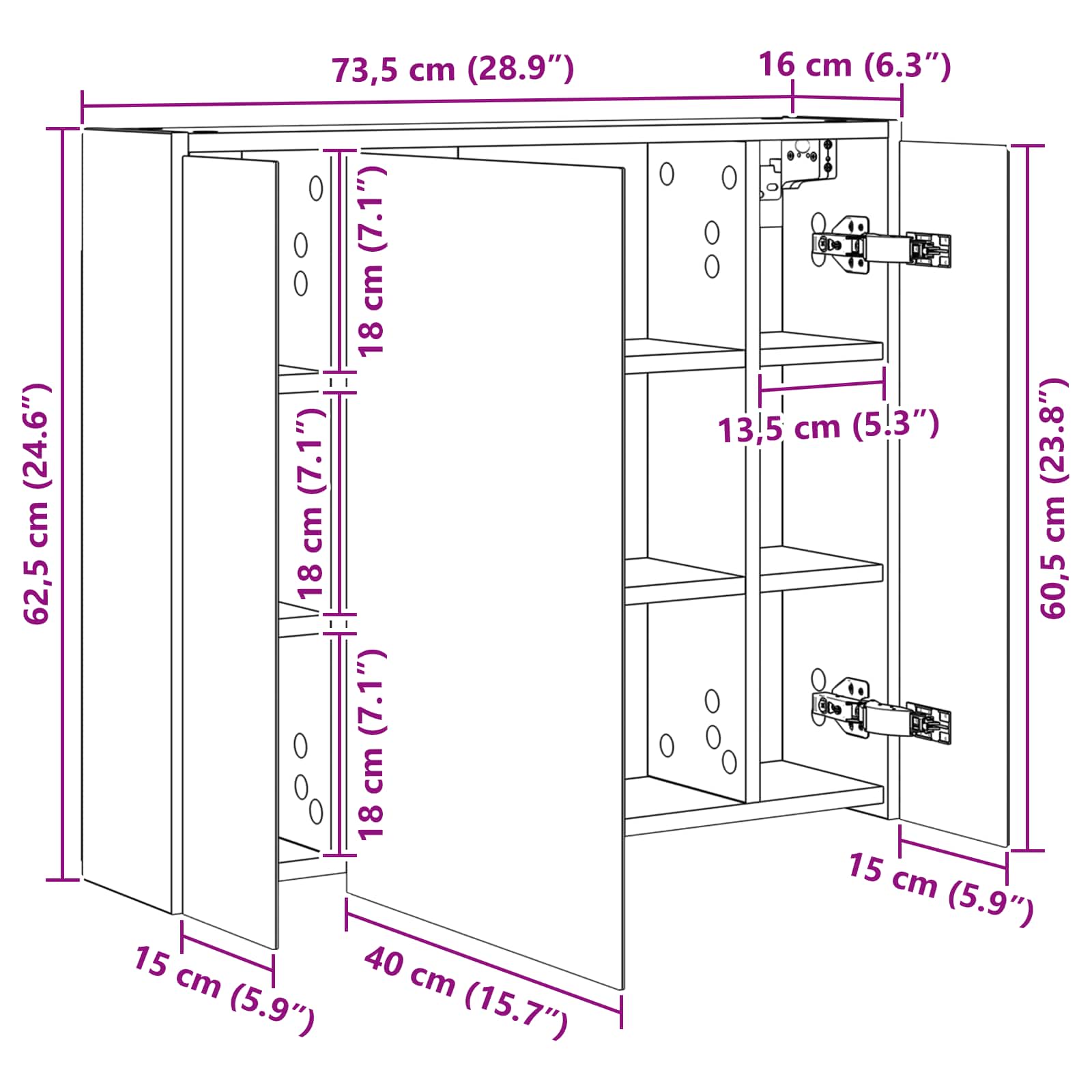 Kylpyhuoneen Peilikaappi Vanha puu 73,5 x 16 x 62,5 cm