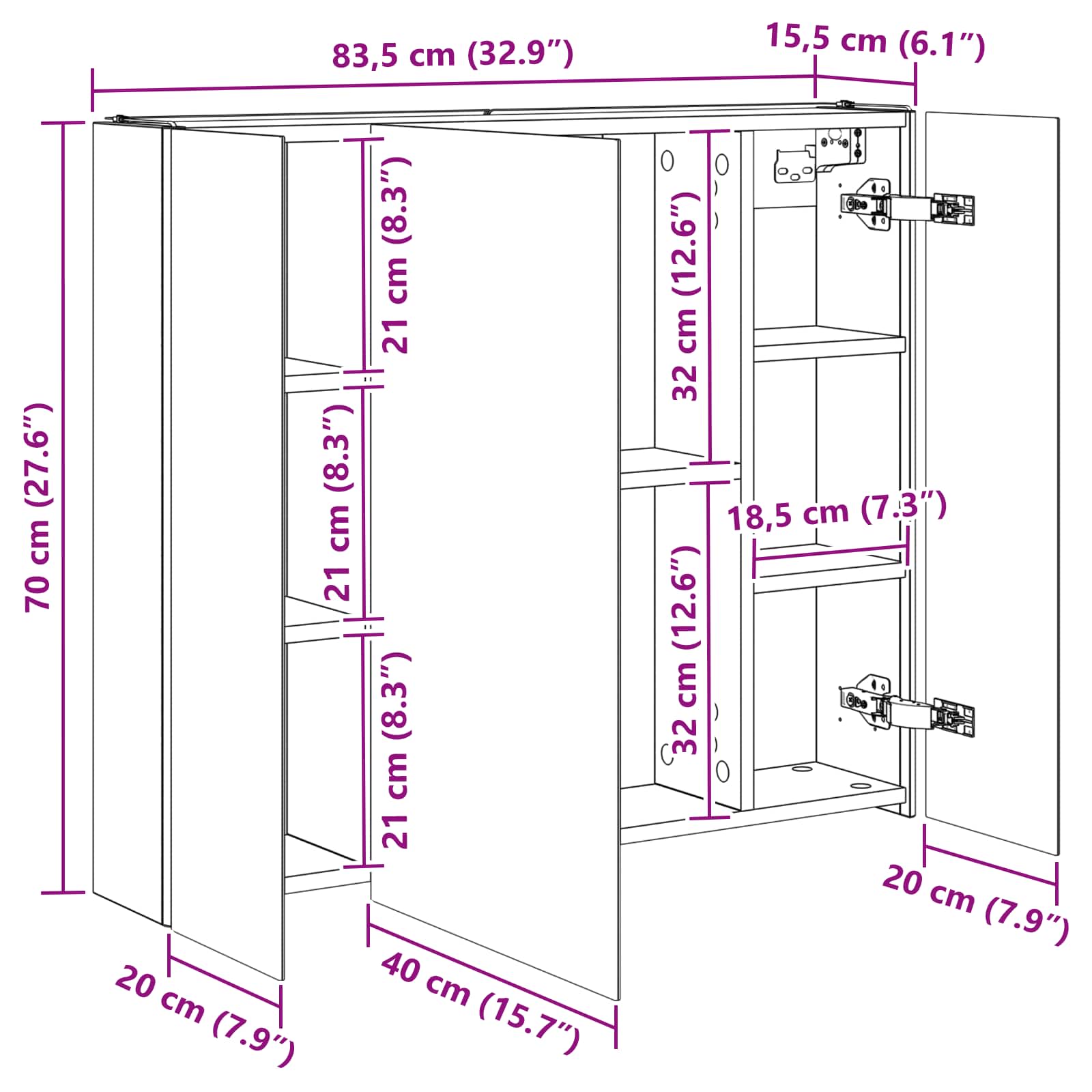 Tämä moderni kylpyhuoneen peilikaappi yhdistää tyylikkään muotoilun ja käytännölliset ominaisuudet, tehden siitä oleellisen lisän nykyaikaiseen kylpyhuoneeseen. Minimalistinen rakenne ja puhtaat linjat tarjoavat hienostuneen ilmeen, mutta kaappi on myös täynnä säilytystilaa päivittäisille tarvikkeille. Valaistus parantaa näkyvyyttä ja tunnelmaa, yhdistäen käytännöllisyyden ja muotoilun.