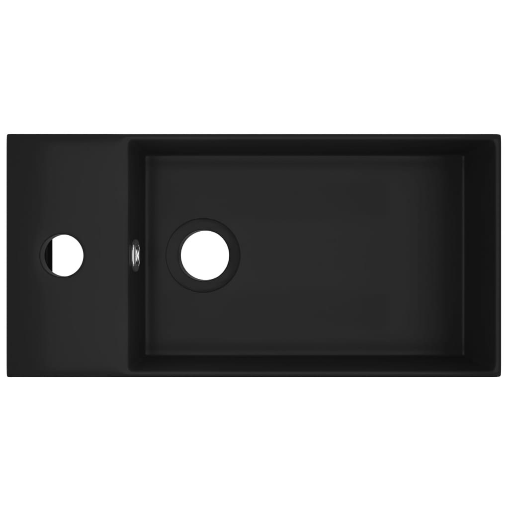 Kylpyhuoneen pesuallas ylivuodolla keraaminen matta musta