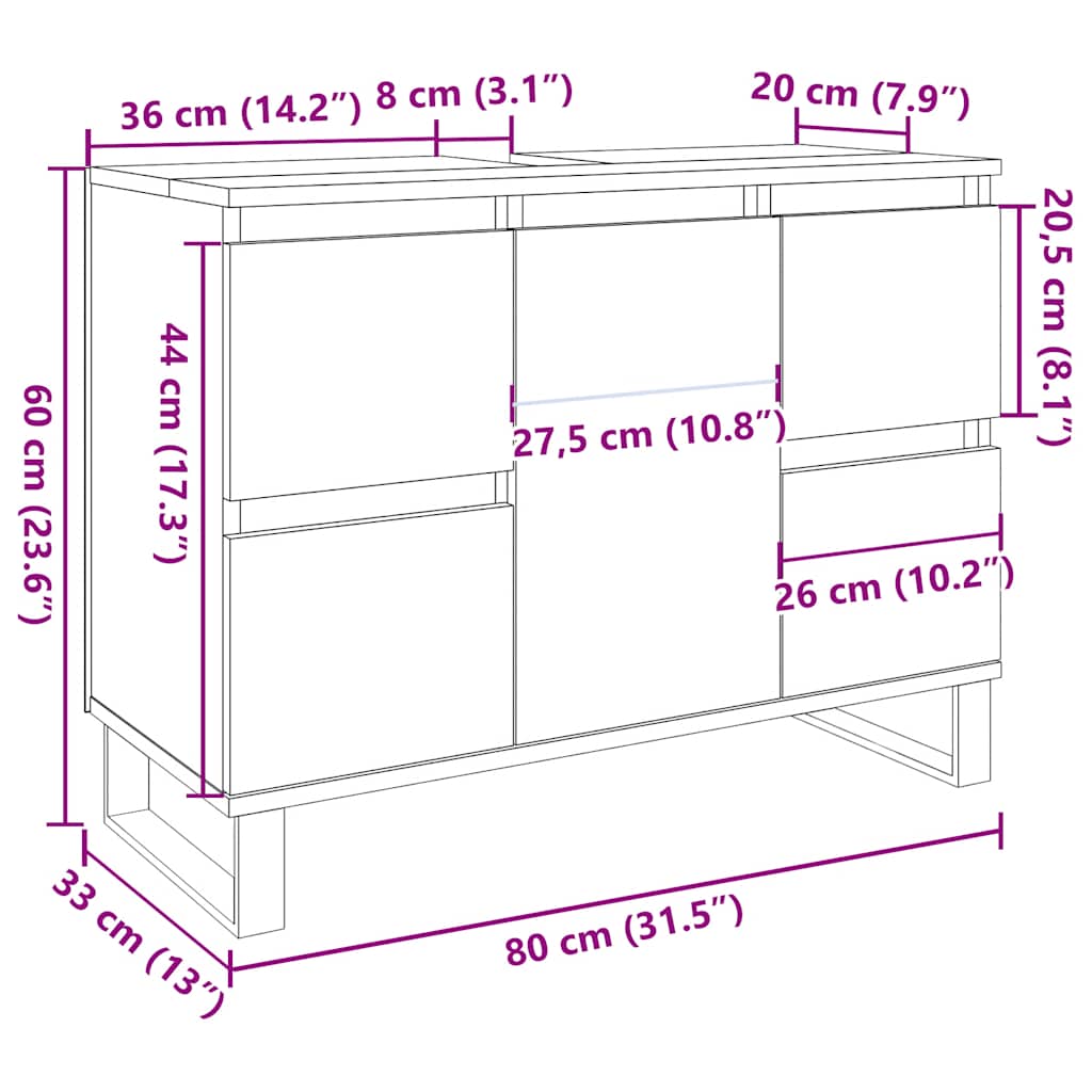 kylpyhuoneen pesuallaskaappi betoni harmaa 80x33x60 cm