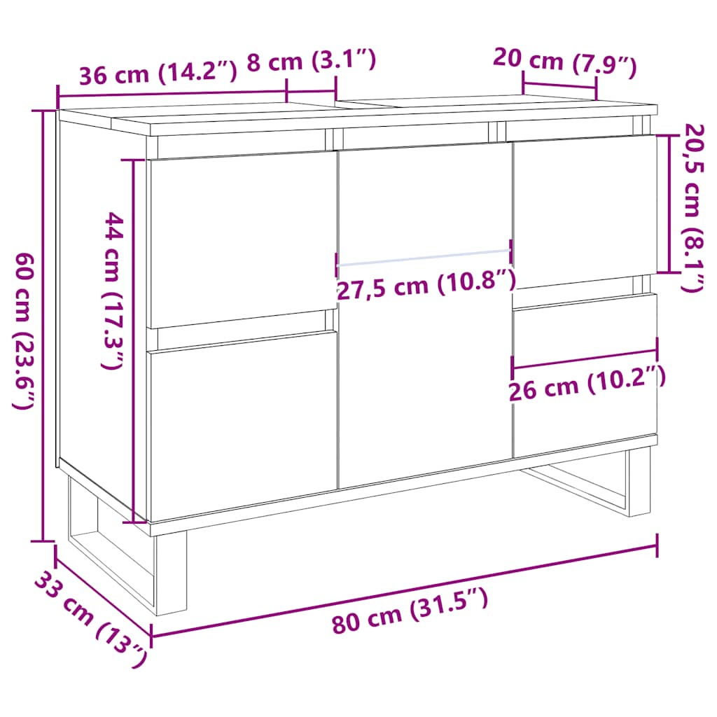 • Runsaasti säilytystilaa: Kylpyhuoneen pesuallaskaappi tarjoaa runsaasti tilaa tärkeille hygienia- ja kylpytuotteillesi, kuten saippuoille, shampoille, hammastahnalle, jne.