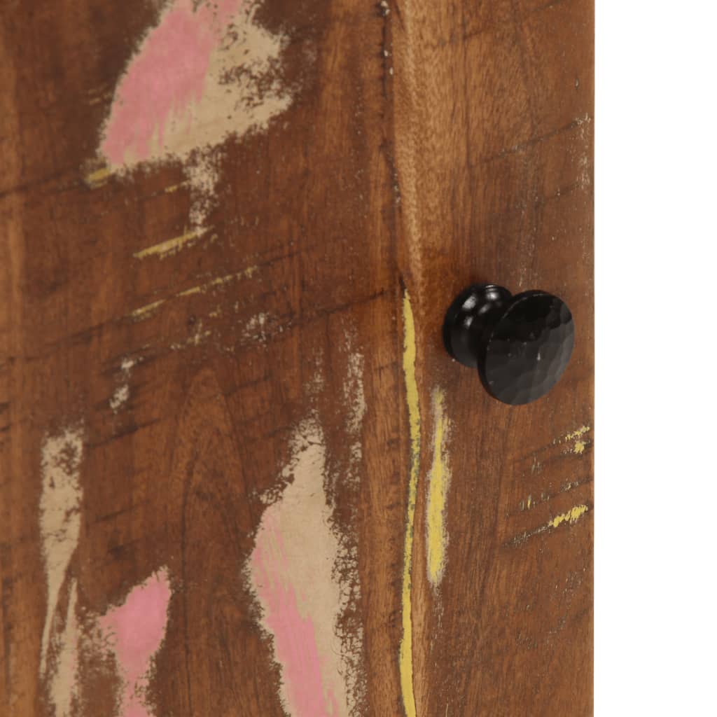 • Kierrätetty täyspuu: Tämä seinäkaappi on valmistettu täydestä tekniseen puuhun yhdistetystä kierrätyspuusta. Täysi kierrätyspuu koostuu uusiokäytetystä puusta, kuten tiikistä, mangopuusta, männystä ja pyökistä. Nämä materiaalit on kerätty vanhoista rakennuksista, tehtaista, vajoista ja veneistä.
