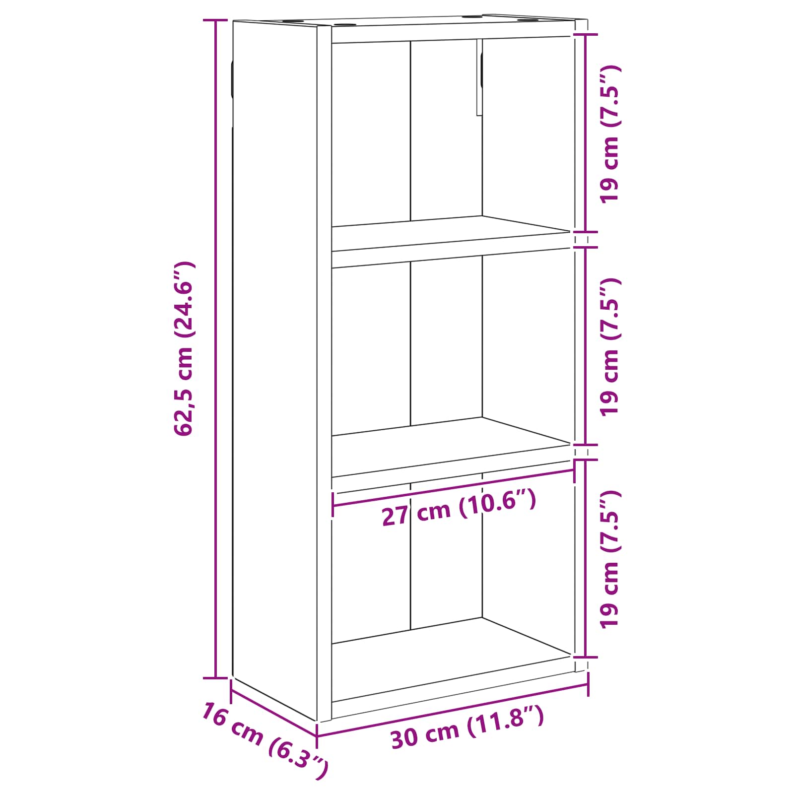 Kylpyhuoneen seinäkaappi hyllyllä Musta Tammi 30 x 16 x 62,5 cm