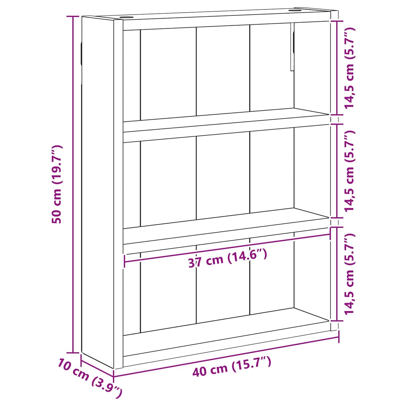 Kylpyhuoneen seinäkaappi hyllyllä Valkoinen 40 x 10 x 50 cm