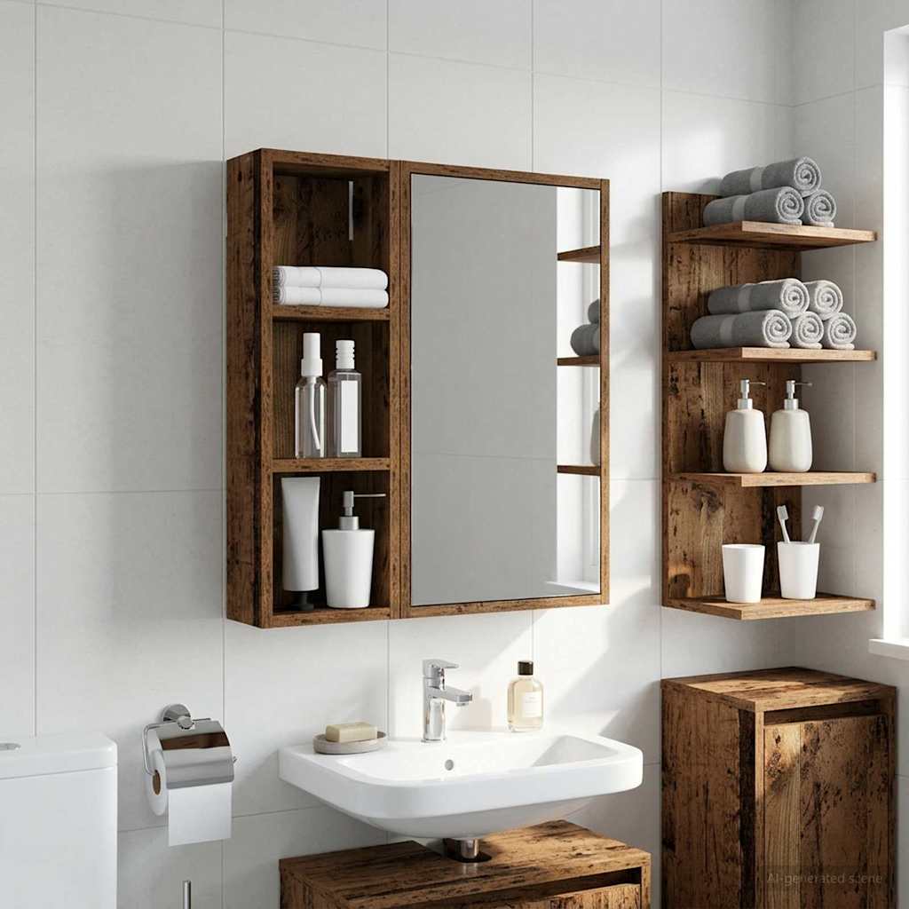 Kylpyhuoneen seinäkaappi hyllyllä Vanha puu 20 x 10 x 60,5 cm