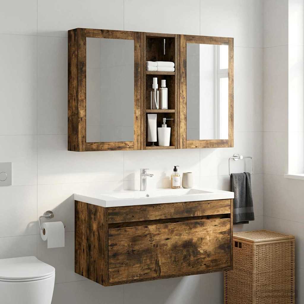 • Materiaali: Kaappi on tehty teknisestä puusta, mikä tekee siitä kestävän ja vahvan kosteissa kylpyhuoneolosuhteissa. Tää materiaali takaa sen, että kaappi pysyy tukeva ja vakaana, ja se on samalla esteettisesti miellyttävä ja moderni lisä mihin tahansa sisustukseen.