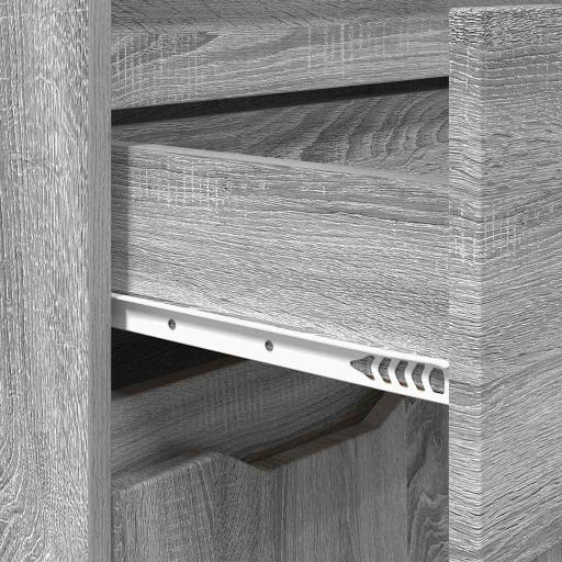 • Kattavat säilytysratkaisut: Kaappi on suunniteltu huolella, ja siinä on kuulalaakeroituja laatikoita ja saranallisia ovia, jotka tarjoavat joustavia säilytysratkaisuja. Laatikot liikkuvat helposti, mikä helpottaa pääsyä, ja ovet tarjoavat turvallisen peiton tavaroille, pitäen tilan siistinä. Kestävä levymateriaali tekee hyllyistä hyviä vaihtoehtoja isoille ja tilaville esineille.