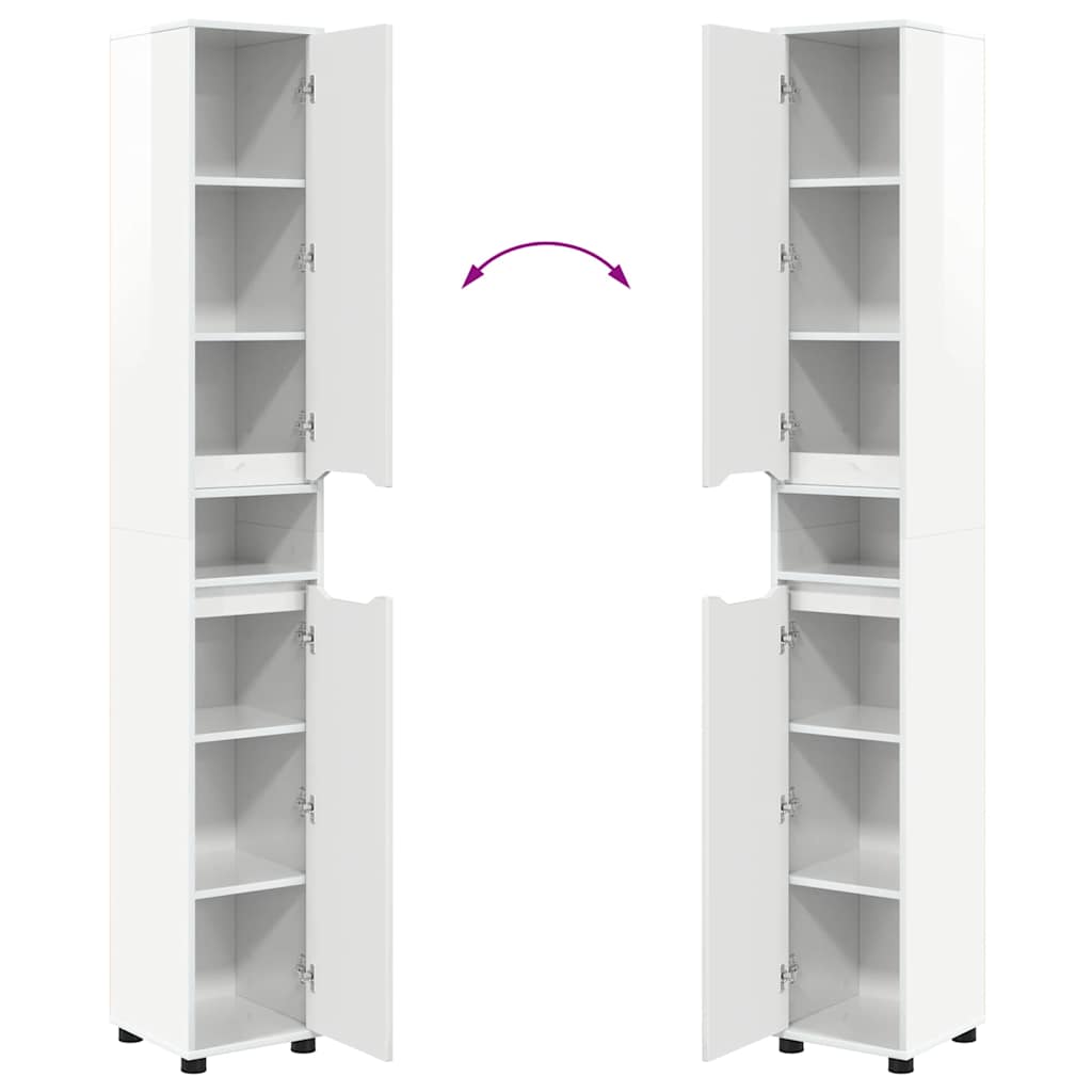 Kylpyhuonekaappi Korkean kiillon valkoinen 30,5 x 30 x 195 cm