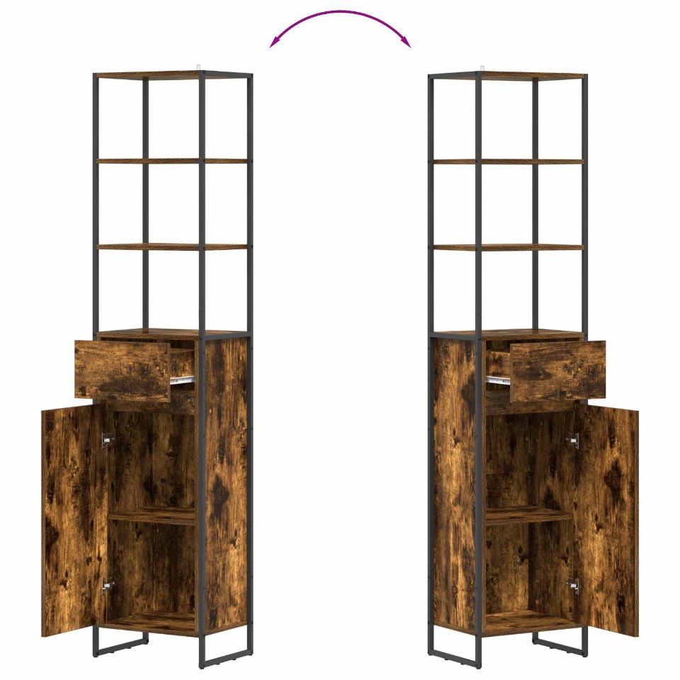 Kylpyhuonekaappi ovella Savupuu 40 x 30 x 180 cm Tekninen puu