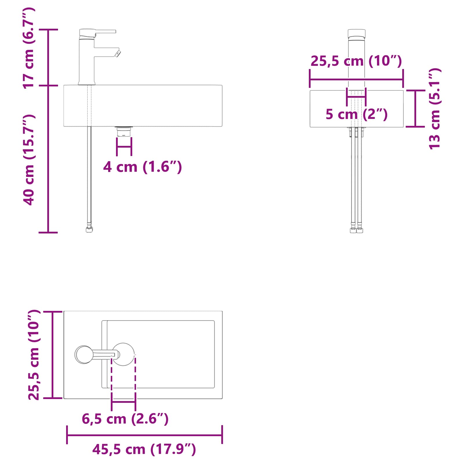 • Yleiset mitat: 45,5 x 22,5 x 84 cm (P x L x K)