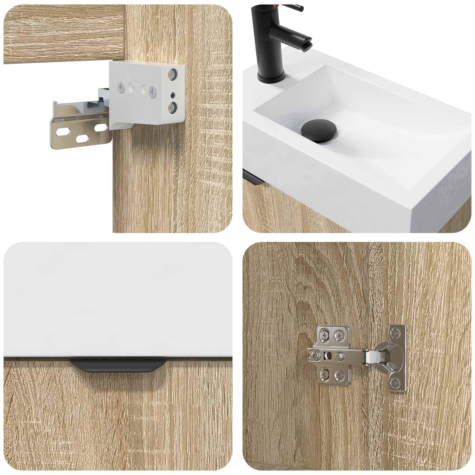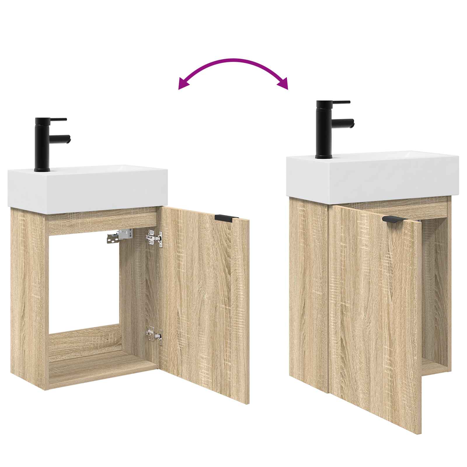 • Käytännölliset ominaisuudet Kaappi sisältää modernin pesualtaan ja nopean tyhjennysjärjestelmän, joka parantaa käyttökokemusta. Oven asennus vaihtelee, jolloin käyttäjä voi päättää, mihin suuntaan ovet avautuvat, mikä tekee siitä mukautettavan erilaisiin kylpyhuoneisiin. Nämä ominaisuudet tekevät kylpyhuoneen käytöstä sujuvampaa ja lisäävät sen kokonaisilmettä.
