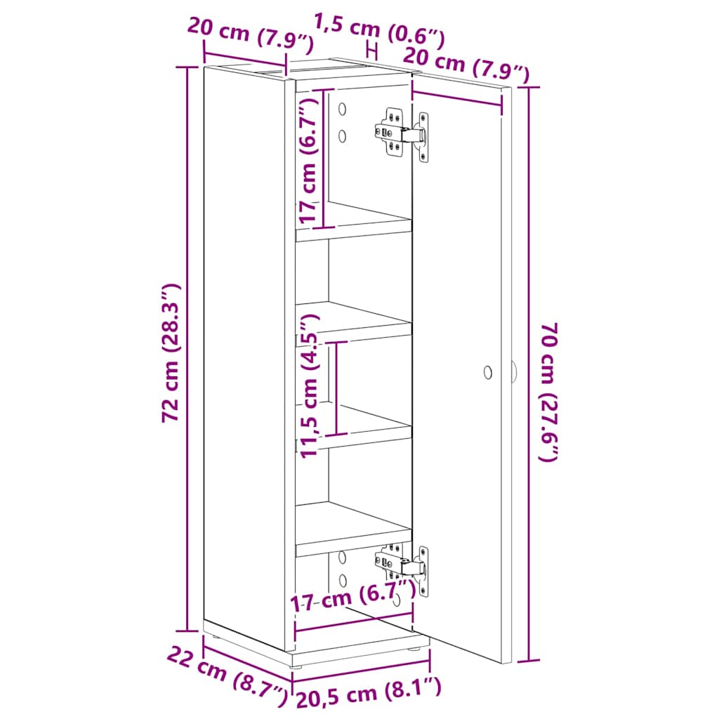 • Mitat: 20,5 x 22 x 72 cm (L x S x K)