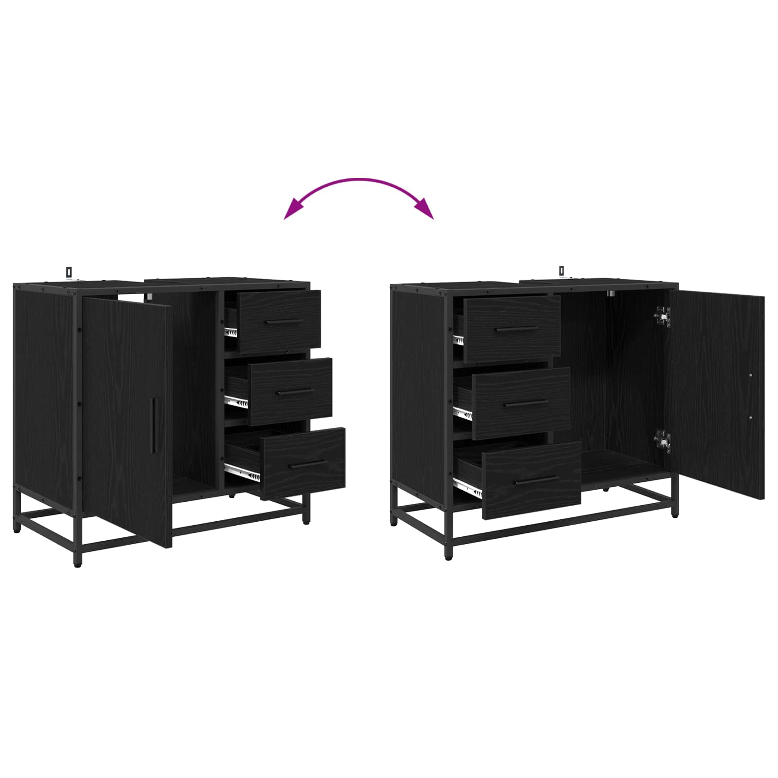 • Optimaalinen muotoilu: Kaappi on varustettu saranoiduilla ovilla ja perinteisillä laatikoilla, joten käytettävyys ja yksityisyys ovat tasapainossa. Tää käytännöllisyys on yhdistetty teolliseen teemaan, ja se sopii täydellisesti sekä moderneihin että retrotyylisiin sisustuksiin.
