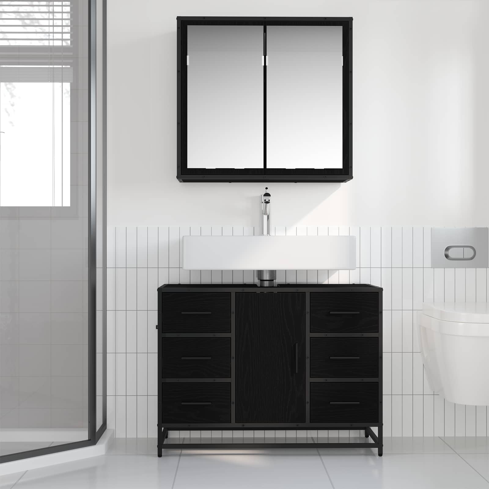 Kylpyhuonekalustesetti ovella 2 pcs Musta tammi 80 x 33 x 60 cm