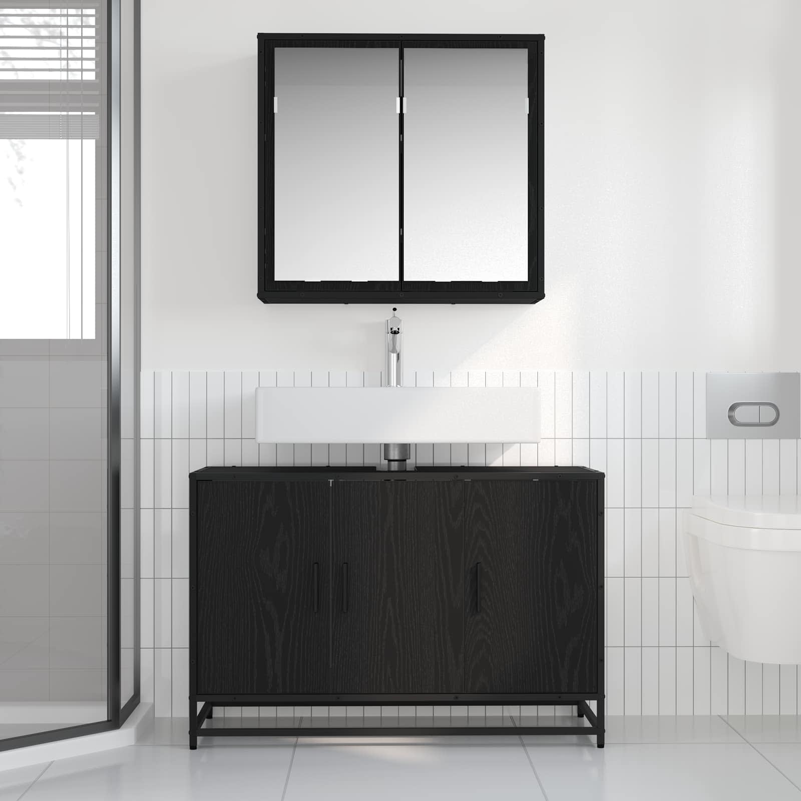 Kylpyhuonekalustesetti ovella 2 pcs Musta tammi 90 x 33 x 60 cm
