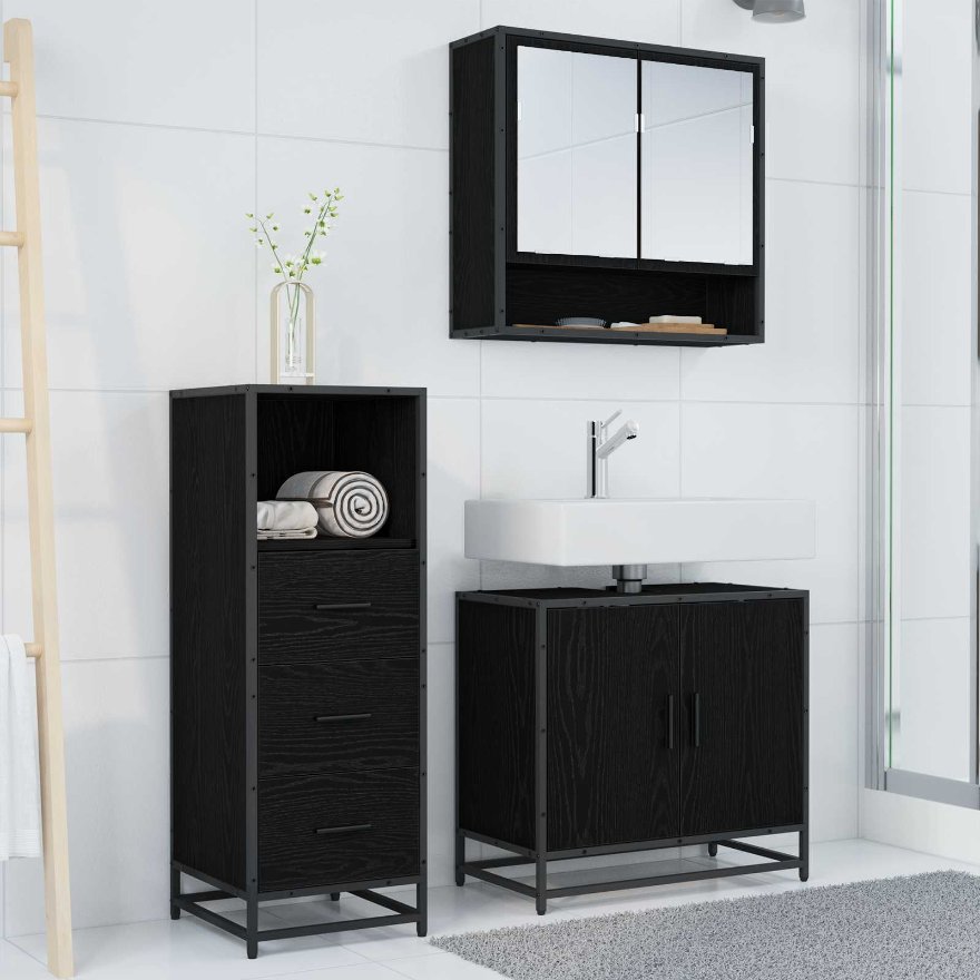 Kylpyhuonekalustesetti ovella 3 pcs Musta tammi 65 x 33 x 60 cm