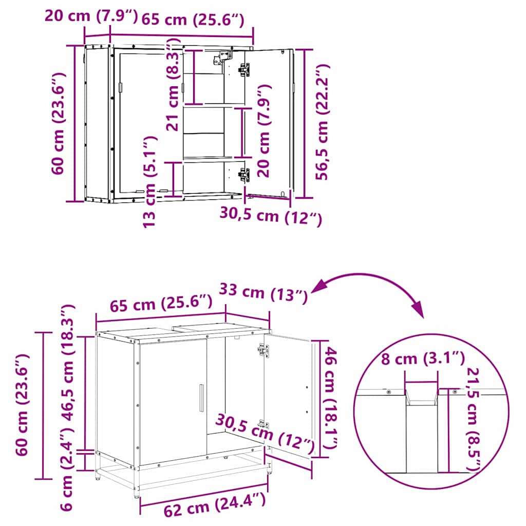 • Komponentit: Setti sisältää peilikaapin, pesukaapin ja toisen kylpyhuonekaapin. Jokainen osa on suunniteltu huomioimaan säilytystarpeesi, jotta kylppäri pysyisi siistinä ja järjestyksessä.