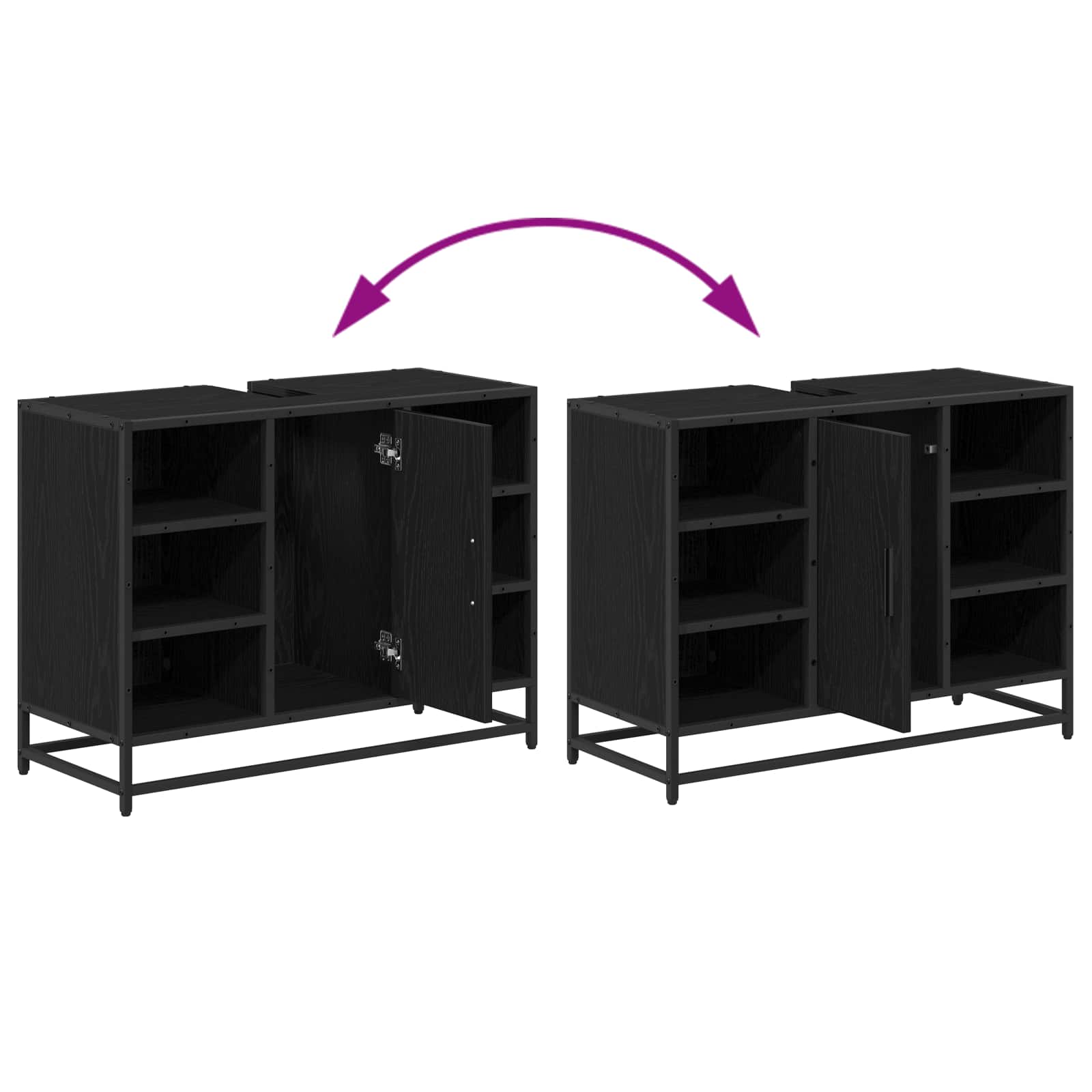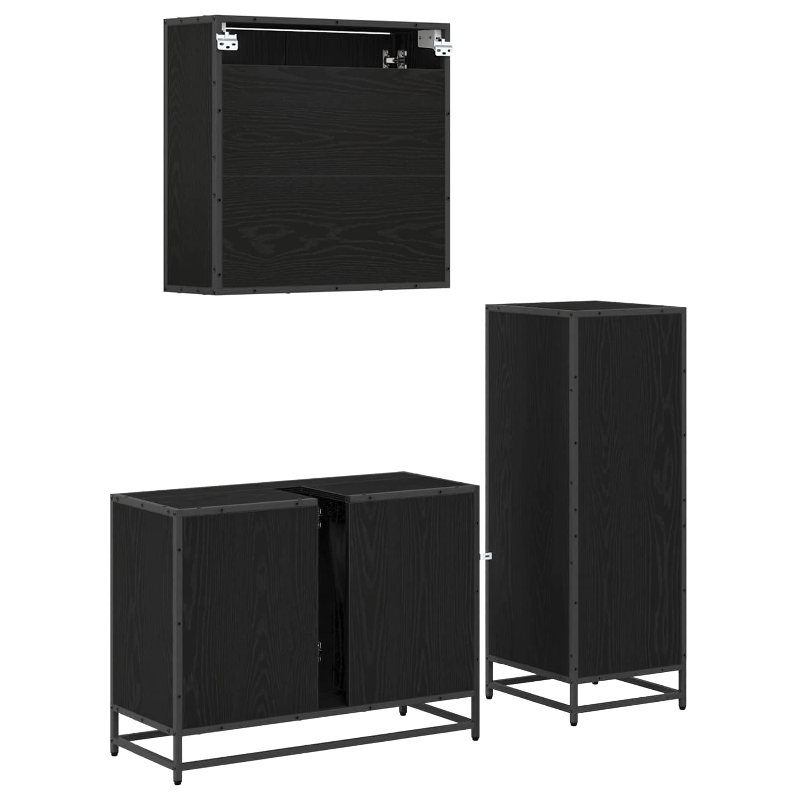 Kylpyhuonekalustesetti ovella 3 pcs Musta tammi 80 x 33 x 60 cm