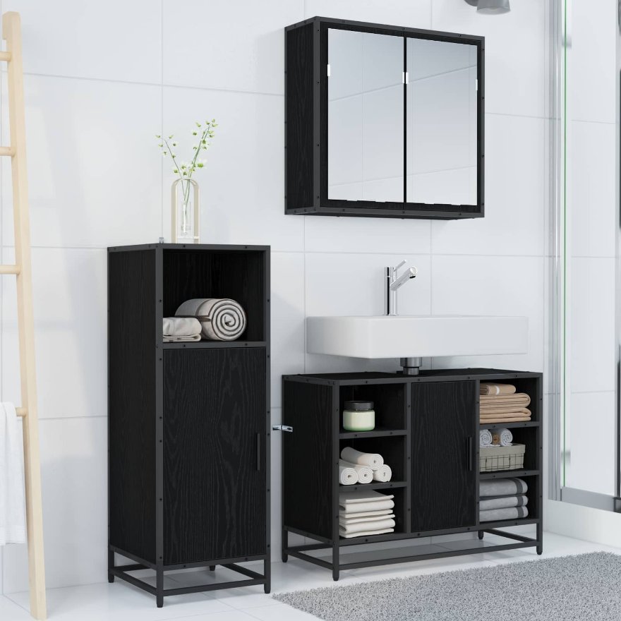 Kylpyhuonekalustesetti ovella 3 pcs Musta tammi 80 x 33 x 60 cm