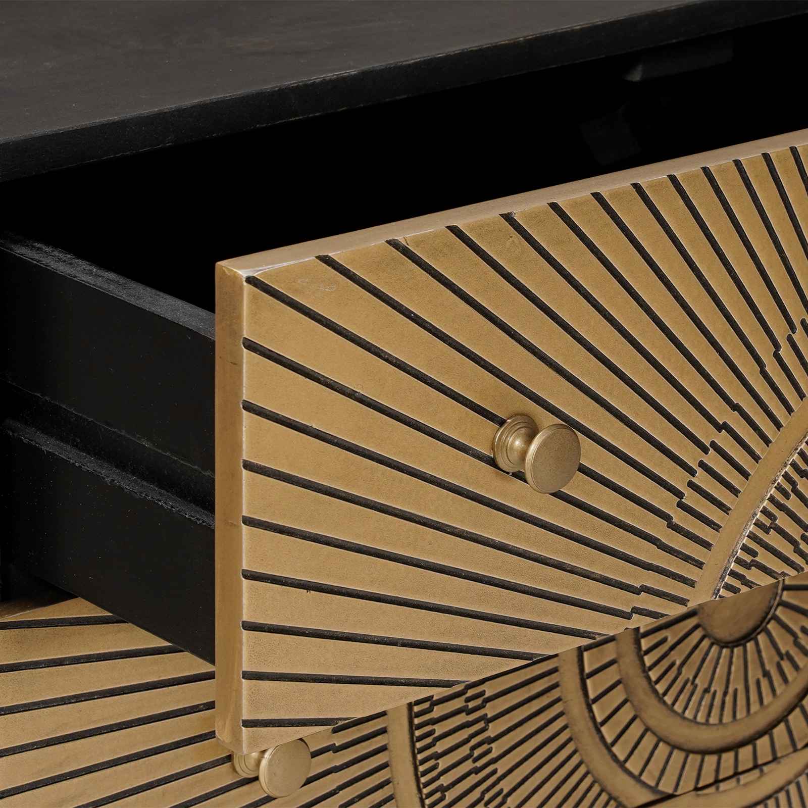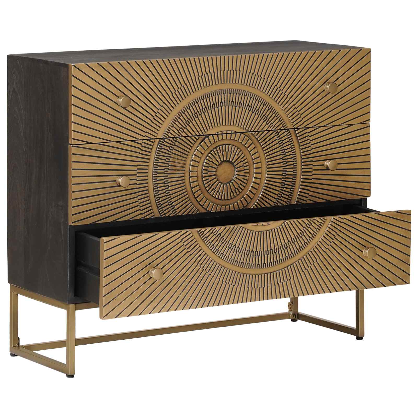 Tämä moderni laatikosto tarjoaa täydellisen yhdistelmän toimivuutta ja tyyliä, mikä tekee siitä mainion lisäyksen mihin tahansa olohuoneeseen. Laatikosto on valmistettu tarkasti durablistista mangopuusta ja muista teknisistä puuosista, joten se yhdistää elegantin ilmeen luotettavaan käytännöllisyyteen. Puun lämmin rakenne tuo luonnollista tunnelmaa kotiin, ja se on täydellinen valinta tyylitietoisille käyttäjille, jotka etsivät sekä esteettisyyttä että käytännöllisyyttä. Tämä säilytyskaluste on monikäyttöinen ratkaisu, joka pitää välttämättömät tavarat järjestyksessä ja käden ulottuvilla.