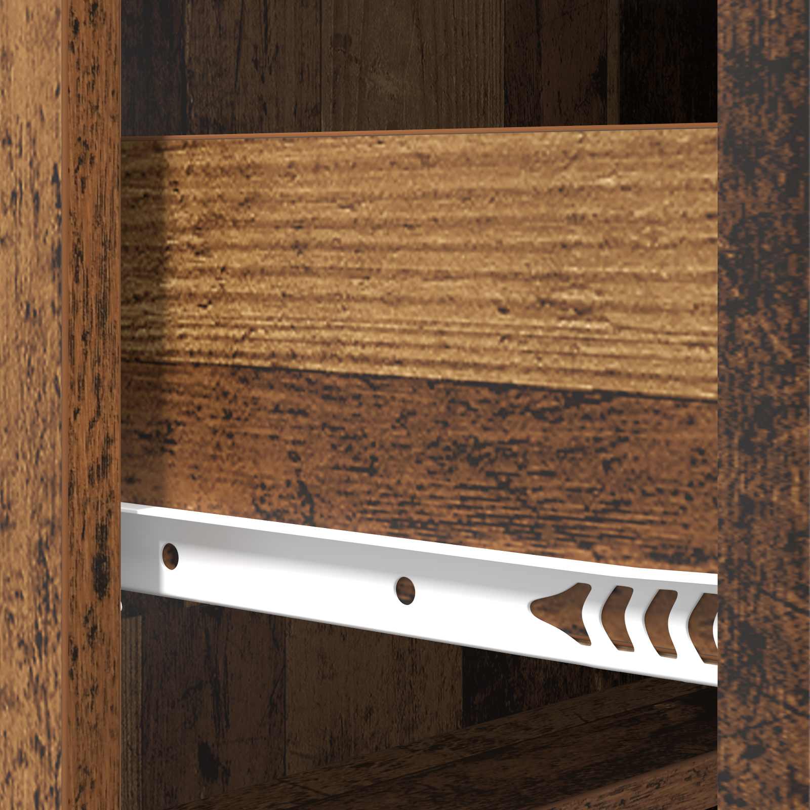 • Materiaalit: Kestävä rakenne teknisestä puusta varmistaa pitkän käyttöiän. Tekninen puu kestää jokapäiväistä käyttöä ja helppohoitoisuutta, samalla kun se pitää hyvän ulkonäkönsä. Kaapin vahva rakenne pitää tavarat paikallaan ilman heikentymistä, jopa käytössä.