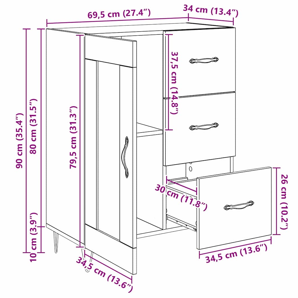 • Yleiset mitat: 69,5 x 34 x 90 cm (P x L x K)