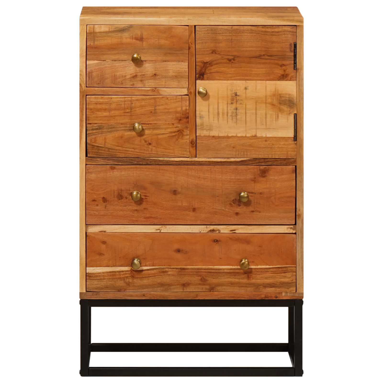 Tämä moderni laatikosto yhdistää tyylin ja käytännöllisyyden. Suorakaiteen muoto ja luonnollinen ruskea väri antavat sille hienostuneen ilmeen, samalla kun se tarjoaa runsaasti säilytystilaa. Tyylikkäät mittasuhteet tekevät siitä täydellisen olohuoneisiin, hyödyntäen tilaa tehokkaasti ilman, että se vie huomiota. Valmistettu akaasiapuusta ja metallikehyksestä, tämä laatikosto on kestävä ja tuo ripauksen eleganssia mihin tahansa huoneeseen.