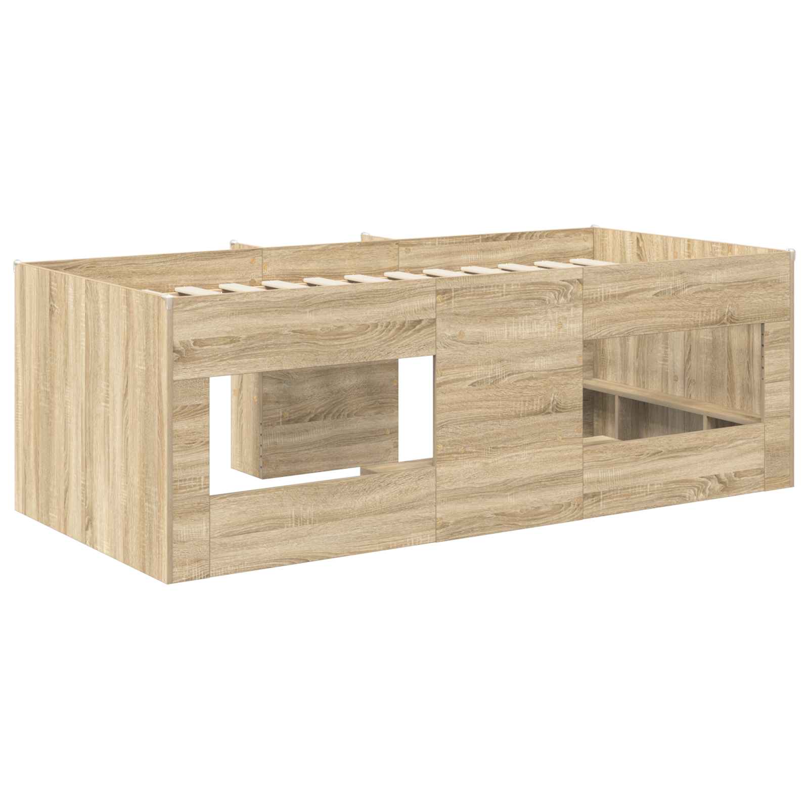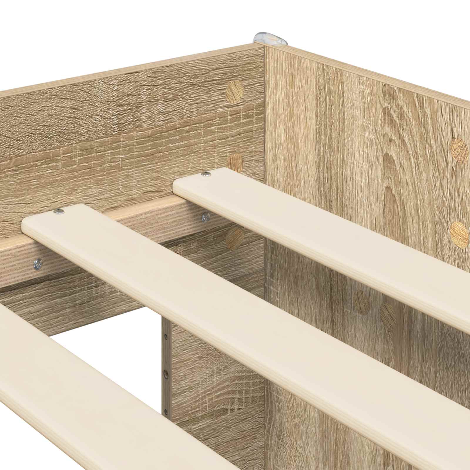 • Vankka rakenteellinen puu runko: Valmistettu kestävästä rakenteellisesta puusta, tämä sängyn runko tarjoaa pitkän aikavälin vakautta ja turvallisuutta lapsellesi. Tämä materiaalivalinta takaa tukevan rakenteen, joka sulautuu vaivattomasti mihin tahansa moderniin makuuhuoneen estetiikkaan.