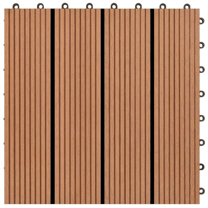 Puukomposiitista valmistettu lattialaattasarjamme sisältää 22 kappaletta 30 x 30 cm kokoisia laattoja, kattaen yhteensä 2 neliömetrin tilan. Lattialaattamme ovat erinomainen lisä terassille, parvekkeelle, kylpyhuoneeseen tai muuhun paikkaan, joka on altaan tai ammeen lähettyvillä.