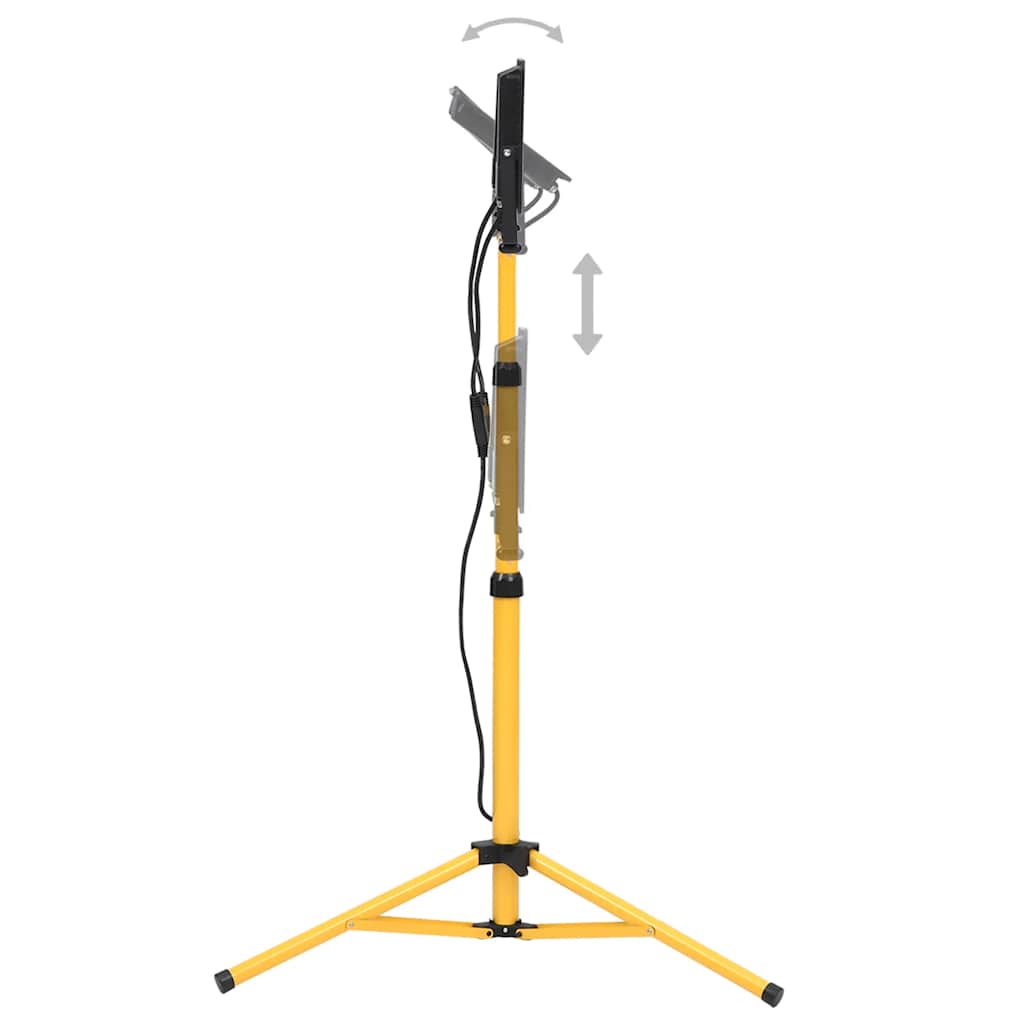 Alumiinikuoren ja lasilinssin ansiosta tämä työvalaisin tarjoaa hyvän lämmön hajoamisen ja se on kevyt. 14000 lm valotehon ja 120° valokeilan ansiosta se takaa täydellisen valaistuksen. Valonheittimen värilämpö on 6000 K, joten se tarjoaa optimaalista valaistusta kotiisi. Työvalon tukena toimii teräskolmijalka, joka lisää sen jykevyyttä ja vakautta. Korkeus on säädettävissä tarpeidesi mukaan. Pistokkeellisen 3 m pistokkeellisen virtajohdon ansiosta valo voidaan asettaa huoneeseen ihanteellisesti.