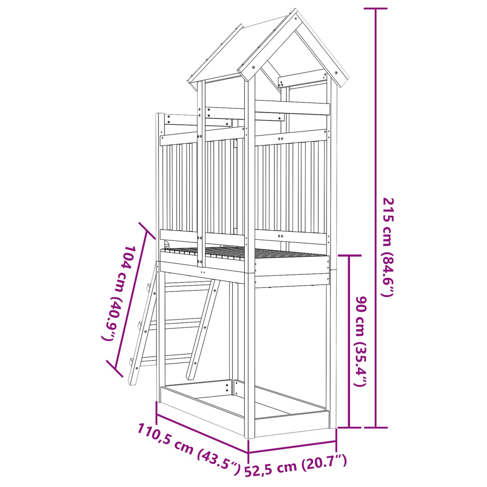 • Rakennusmateriaalit: Leikkitorni on rakennettu kestäväksi, jotta se voi kestää erilaisia sääolosuhteita. Vahvat komponentit tarjoavat turvallisen ympäristön lapsille leikkiä ilman huolia.