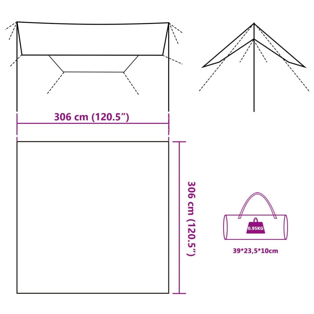 Leirintäalue tarp oliivinvihreä 306×306 cm vedenpitävä