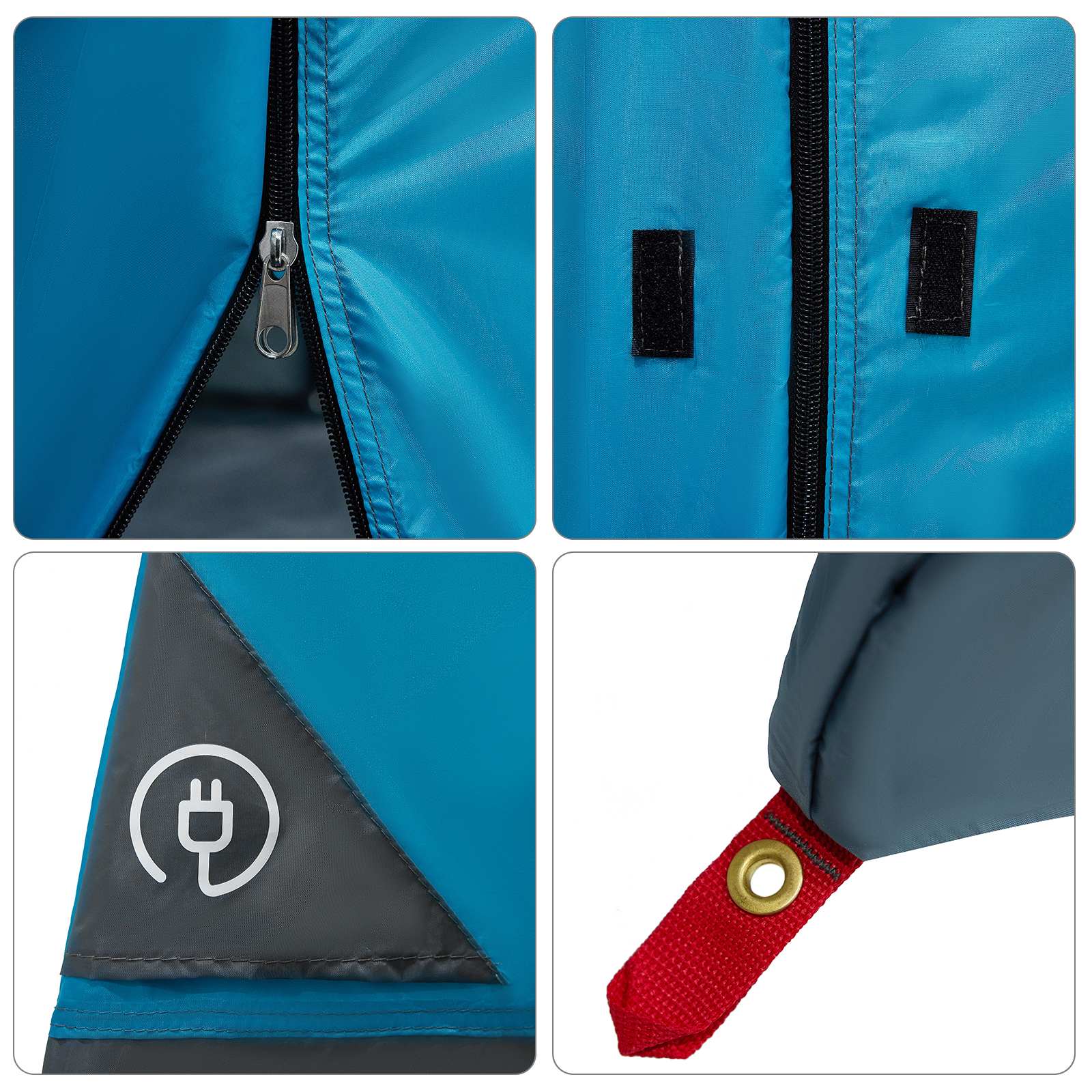 • Sisältää komponentit: Telttamme on varustettu käytännöllisellä vetoketjusulkimella, joka tuo yksityisyyttä ja turvallisuutta. Kokoontaittuva muotoilu helpottaa telttan pystyttämistä ja kuljettamista, ja se sopeutuu erilaisiin ulkotilanteisiin.