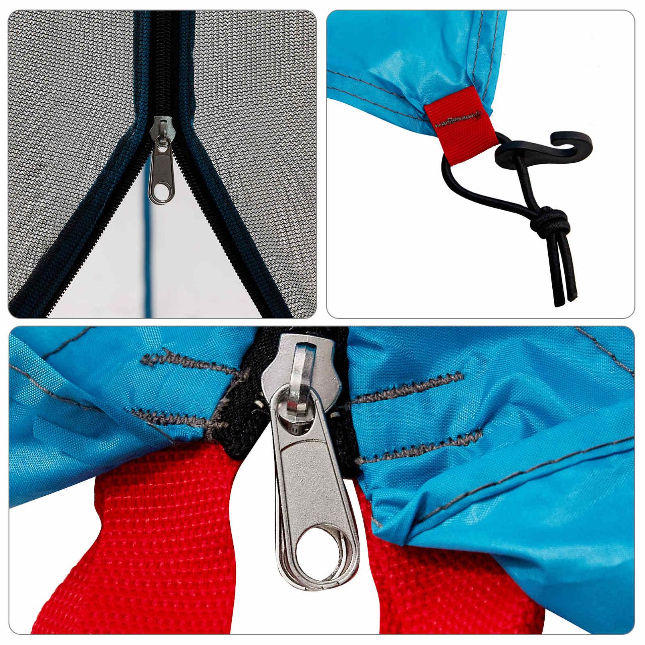 • Sisältää komponentit: Telttamme on varustettu käytännöllisellä vetoketjusulkimella, joka tuo yksityisyyttä ja turvallisuutta. Kokoontaittuva muotoilu helpottaa telttan pystyttämistä ja kuljettamista, ja se sopeutuu erilaisiin ulkotilanteisiin.