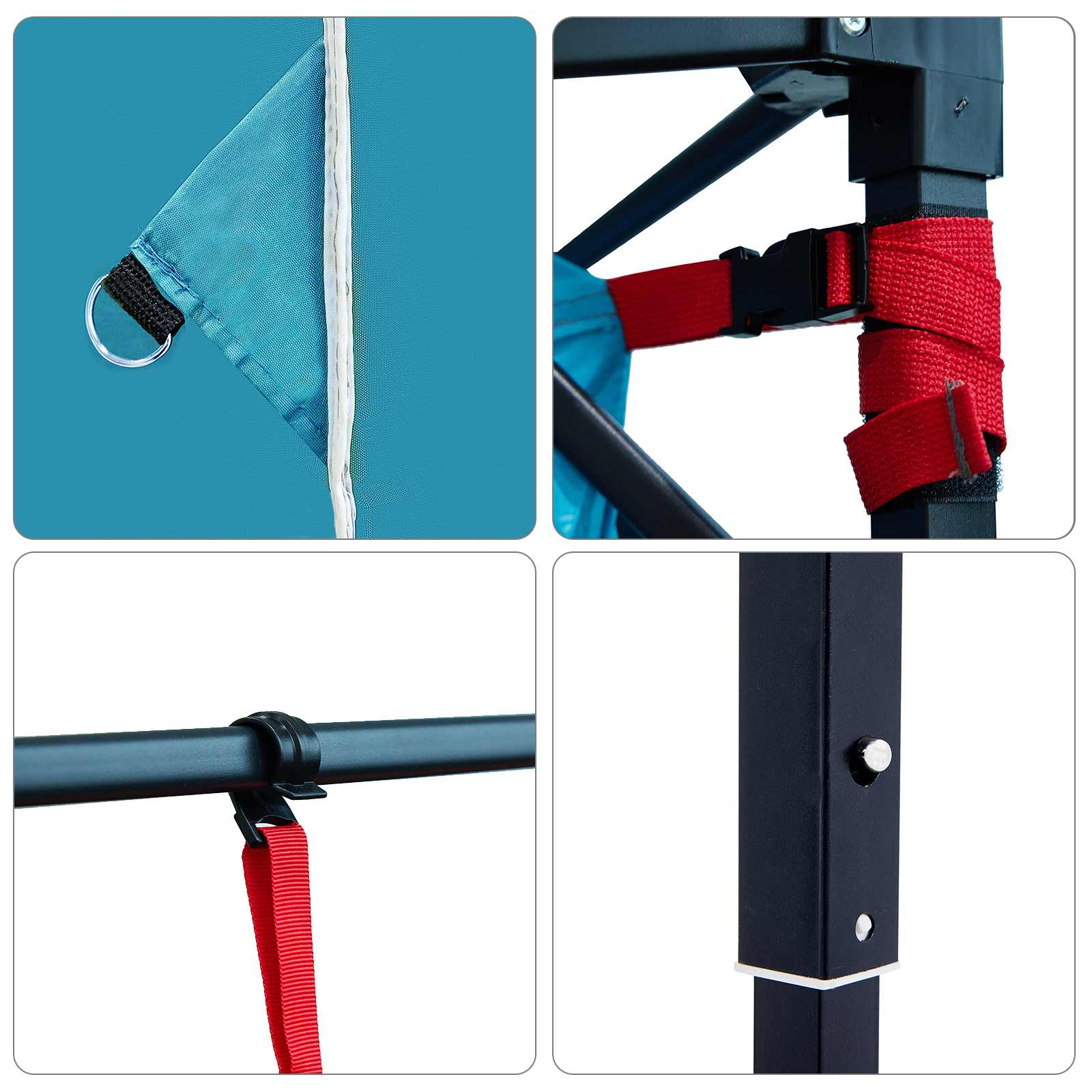 • Sisältää komponentit: Telttamme on varustettu käytännöllisellä vetoketjusulkimella, joka tuo yksityisyyttä ja turvallisuutta. Kokoontaittuva muotoilu helpottaa telttan pystyttämistä ja kuljettamista, ja se sopeutuu erilaisiin ulkotilanteisiin.