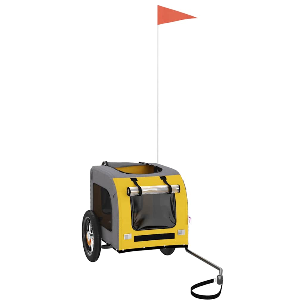 Lemmikinkuljetuskärry polkupyörään keltaharmaa kangas ja rauta
