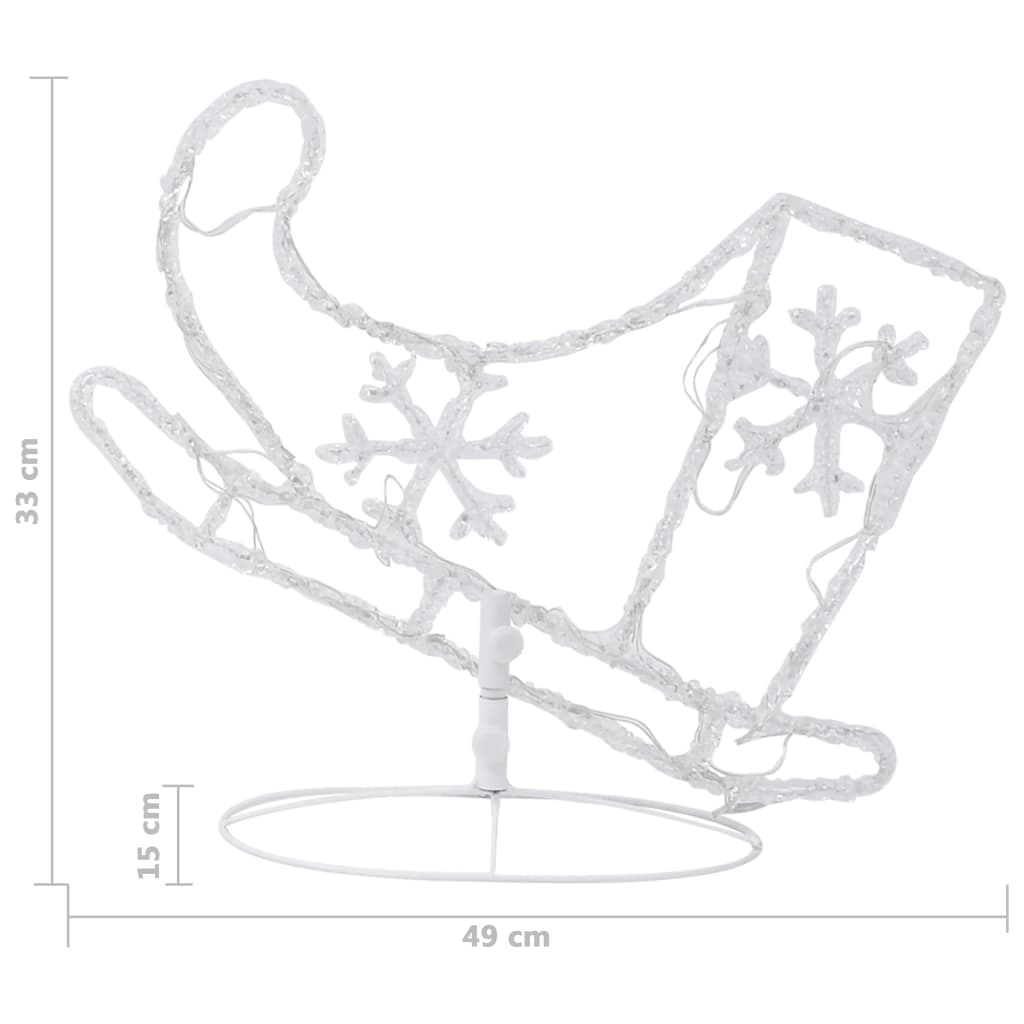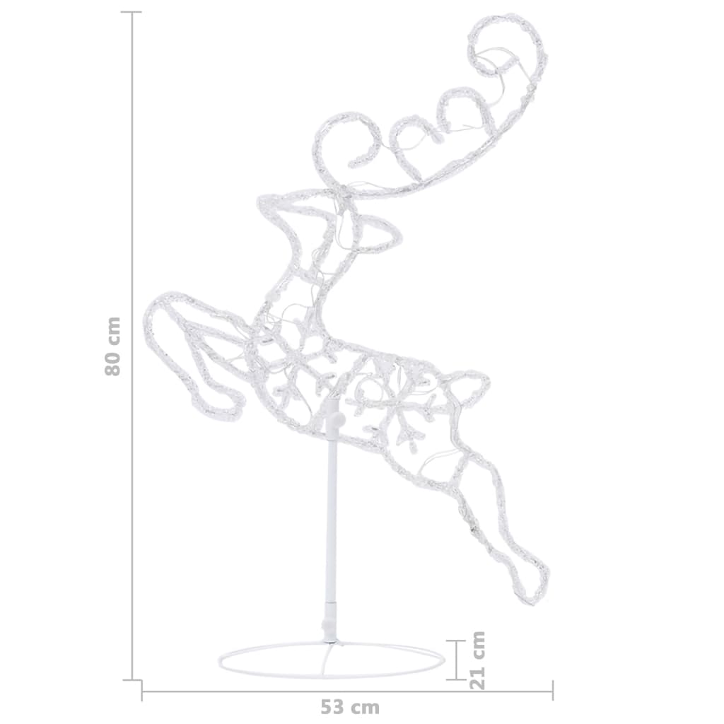 Joulukoriste on valmistettu akryylista ja siinä on viileä, jäinen ulkonäkö. Hehkuvat porot ja reki- koriste sisältää 72 energiatehokasta ja pitkäkestoista LED-valoa. Se on varustettu kahdeksalla eri valaisuvaihtoehdolla: kaikkien efektien yhdistelmä, hitaasti hehkuva, välkkyvä/vilkkuva, aaltomainen, juokseva vesi, jaksottainen, tasainen ja pikkuhiljaa himmenevä. Se valaisee kauniisti ja luo taianomaista joulun tunnelmaa. Mukana olevat jalustat lisäävät koristeen vakautta.
