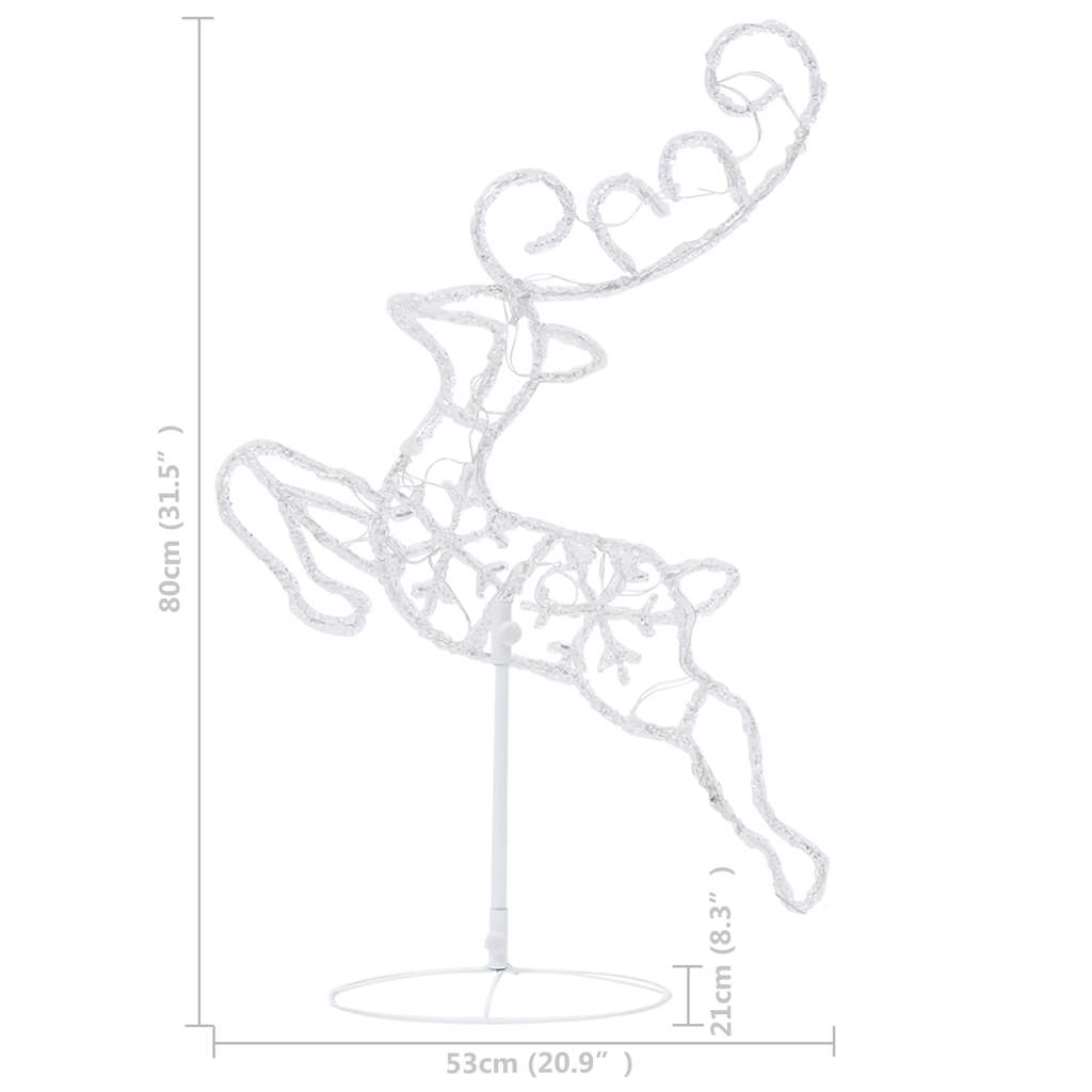 Joulukoriste on valmistettu akryylista ja siinä on viileä, jäinen ulkonäkö. Hehkuvat porot ja reki- koriste sisältää 72 energiatehokasta ja pitkäkestoista LED-valoa. Se on varustettu kahdeksalla eri valaisuvaihtoehdolla: kaikkien efektien yhdistelmä, hitaasti hehkuva, välkkyvä/vilkkuva, aaltomainen, juokseva vesi, jaksottainen, tasainen ja pikkuhiljaa himmenevä. Se valaisee kauniisti ja luo taianomaista joulun tunnelmaa. Mukana olevat jalustat lisäävät koristeen vakautta.