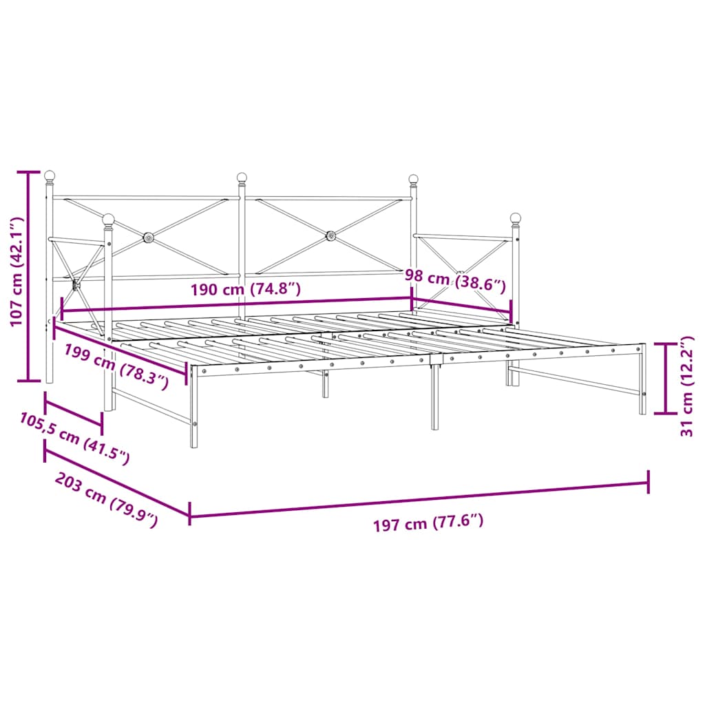 • Sängyn mitat (kun ei ole ulos vedettävä): 197 x 105,5 x 107 cm (P x L x K)
