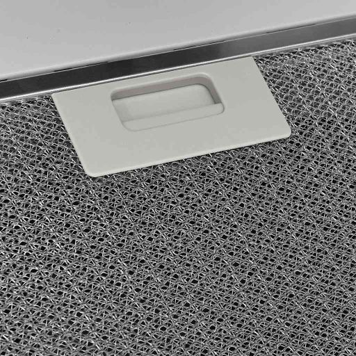 Tässä liesituulettimessa on tehokas 297 m³/h puhallin. Pestävä alumiininen rasvasuodatin on myös mukana ja se suojaa liesituulettimen sisäpuolta ja poistokanavaa rasvalta. Sisäänrakennettu LED-lamppu valaisee keittopinnan tehokkaasti ja säästää energiaa. Laitetta voidaan käyttää kätevästi painikkeilla. Siinä on 3 erilaista nopeutta, joista voit valita sopivan. Sen kaltevan muodon takia voit katsoa melkein pystysuunnassa ruoanlaittoastioitasi kolauttamatta päätäsi. 90 cm leveys säästää tilaa ja siksi se soveltuu pieniin keittiöihin. Karkaistun lasin ja ruostumattoman teräsputken ansiosta seinäkiinnitettävä liesituuletin on todella kestävä ja helppo puhdistaa.