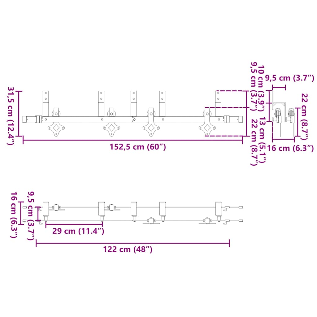 Liukuoven asennussarja teräs 152,5 cm musta