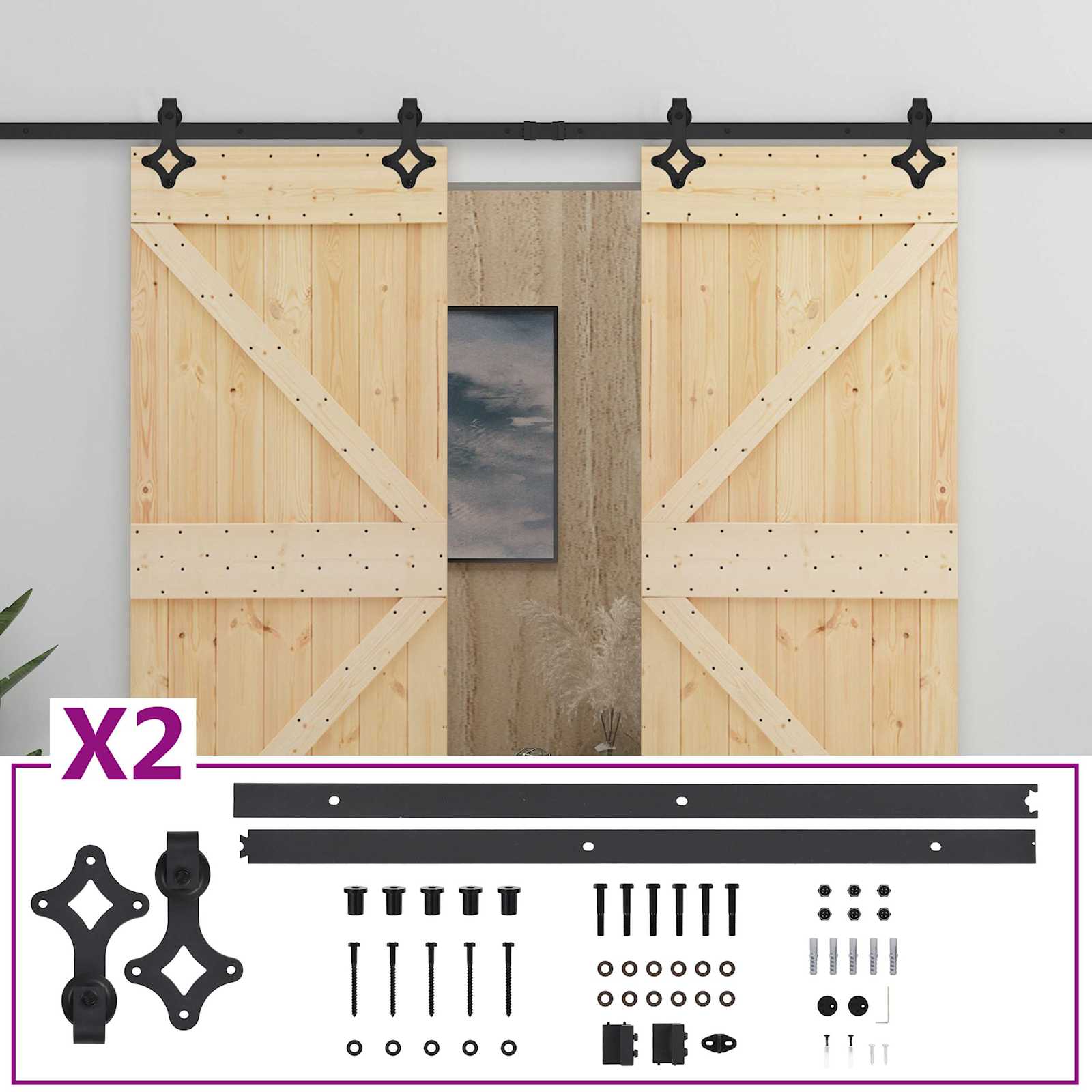 • Mäntypuinen rakenne: Liukuovi on tehty täysistä mäntypuista, joten se tuo luonnollista ilmettä ja kestävyyttä eri sisustustyyleihin.