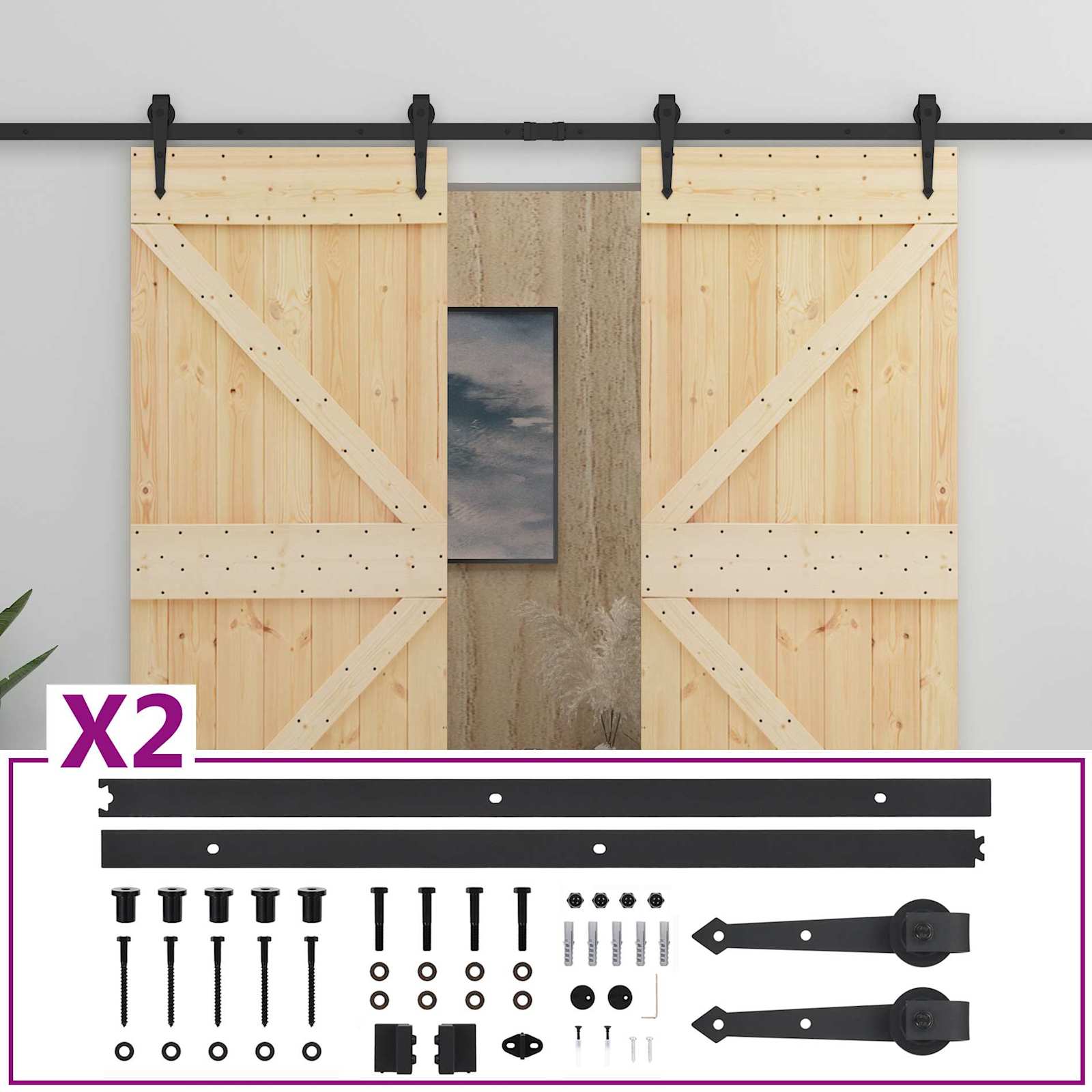 Liukuovi 2 pcs Luonnollinen ja musta Täysi mänty