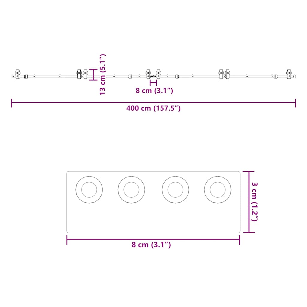Liukuovi Hardware Kit 400 cm Teräs Musta