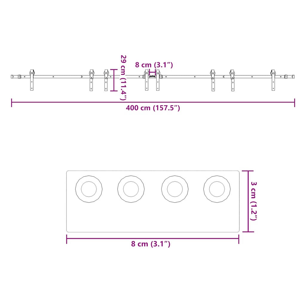 Liukuovi Hardware Kit 400 cm Teräs Musta